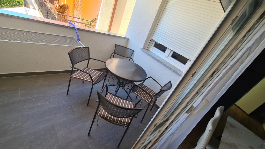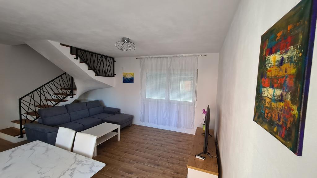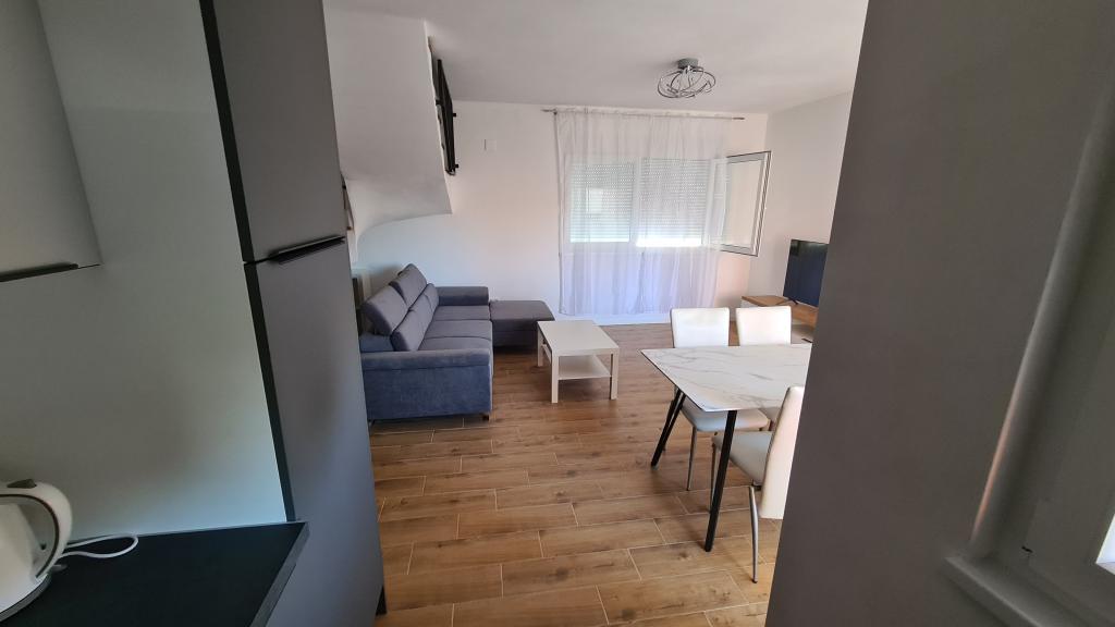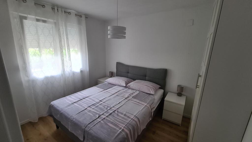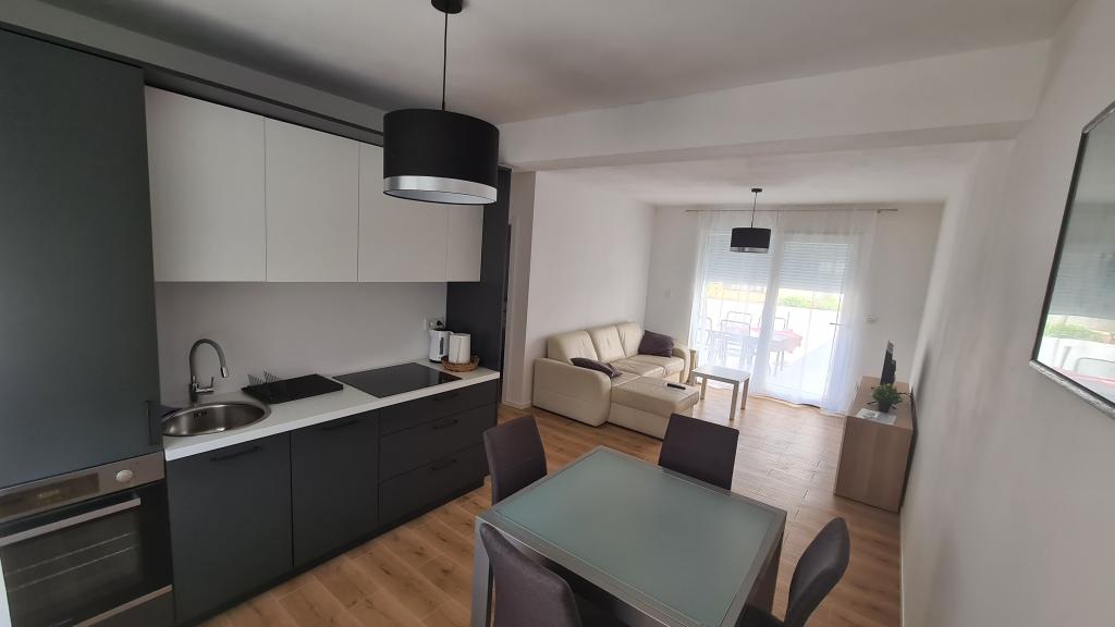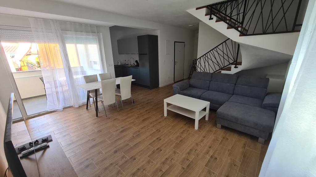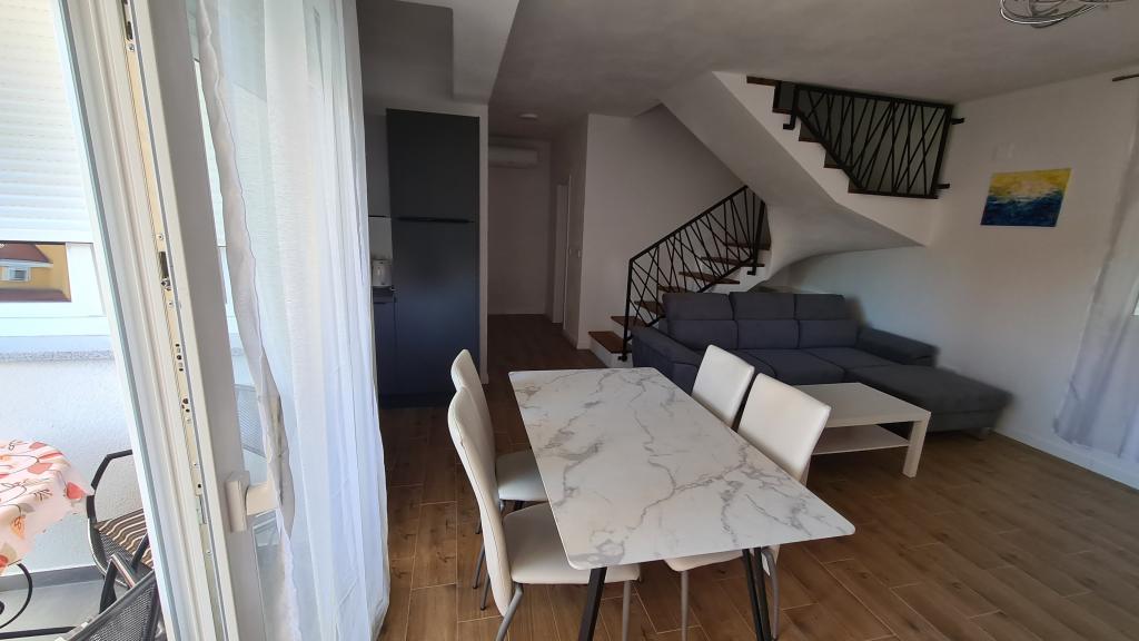 AP-Prizemlje: Novi kvalitetno uređen apartman, idealan za odličan odmor. Stambeni objekt se sastoji od ulaza, kupaonice, kuhinje, vlastite terase i blagavaone dnevni boravak sa kutnom garniturom na razvlačenje te spavaće sobe sa bračnim krevetom. Gostima je na raspolaganju vlastita terasa. Dvoetažni AP kat: Novi kvalitetno uređen apartman, idealan za odličan odmor. Stambeni objekt je na dvije etaže. Donja etaža dnevni dio (ulaz, kupaonica, kuhinja, blagavaona lođa i dnevni boravak sa kutnom garniturom na razvlačenje) te spavaći dio na gornjoj etaži (dvije spavaće sobe sa bračnim krevetima). Nalazi se na izuzetnoj lokaciji dvije minute od središnjeg trga, minutu od trgovine i pekara te raznih restorana i tri minute od plaže. Besplatan parking i Wi-Fi.