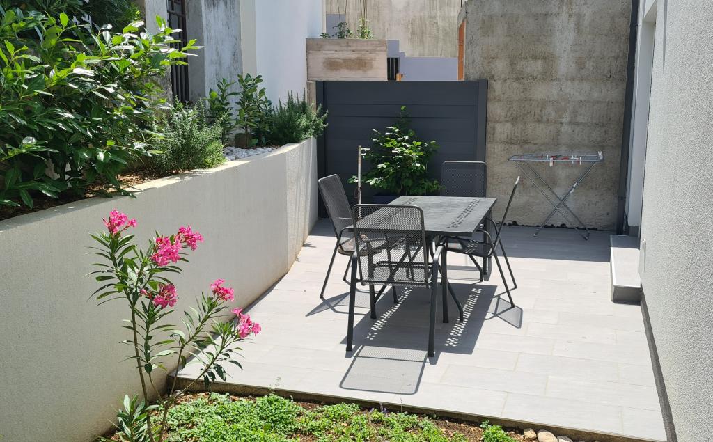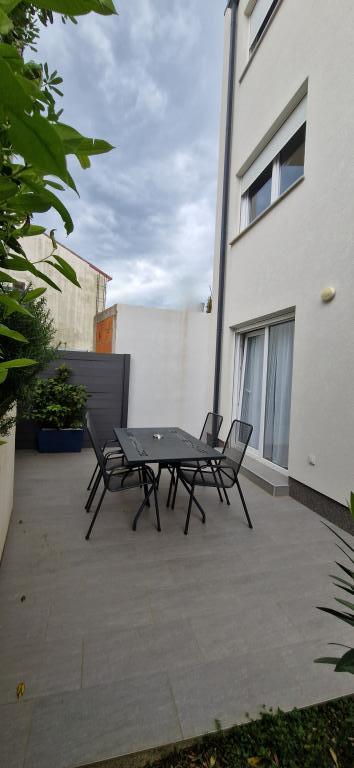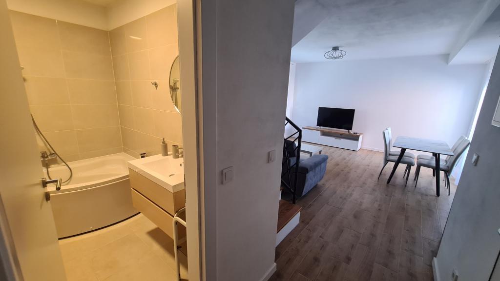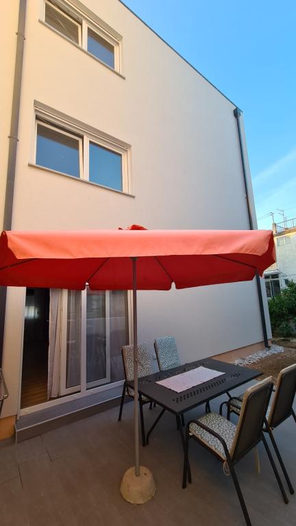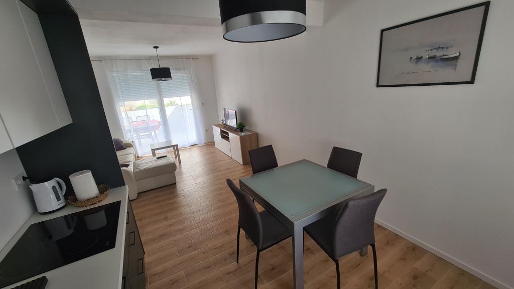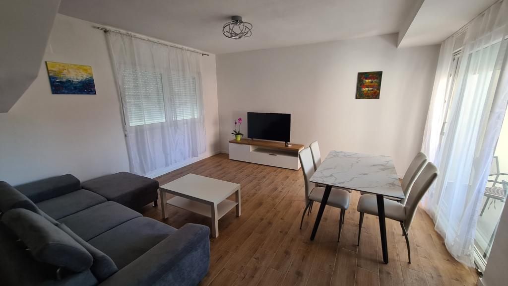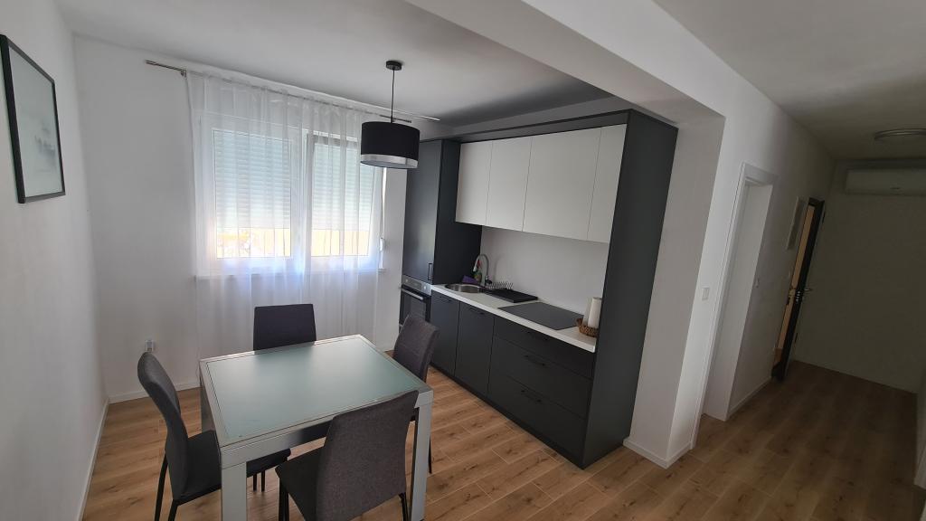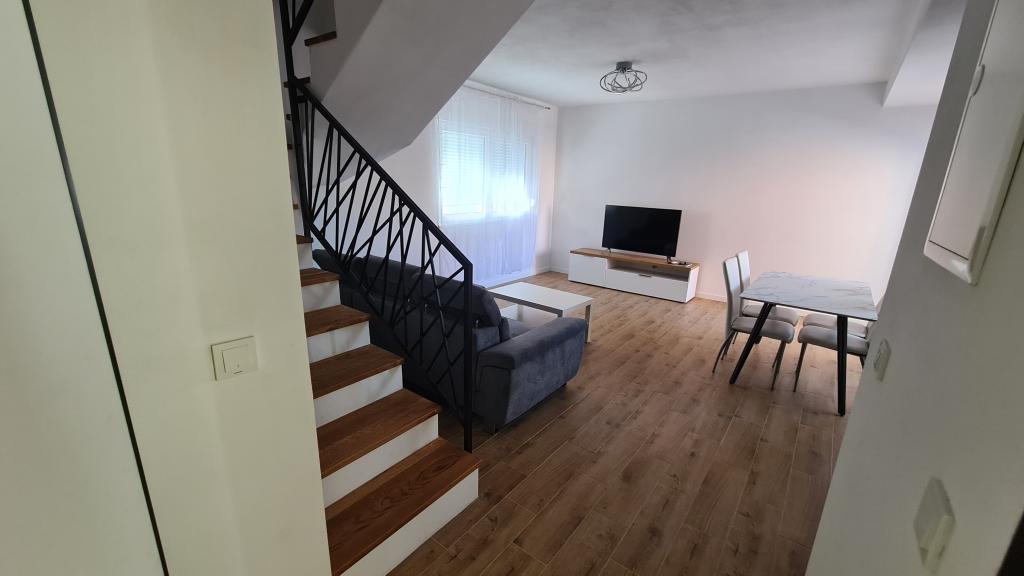 AP-Prizemlje: Novi kvalitetno uređen apartman, idealan za odličan odmor. Stambeni objekt se sastoji od ulaza, kupaonice, kuhinje, vlastite terase i blagavaone dnevni boravak sa kutnom garniturom na razvlačenje te spavaće sobe sa bračnim krevetom. Gostima je na raspolaganju vlastita terasa. Dvoetažni AP kat: Novi kvalitetno uređen apartman, idealan za odličan odmor. Stambeni objekt je na dvije etaže. Donja etaža dnevni dio (ulaz, kupaonica, kuhinja, blagavaona lođa i dnevni boravak sa kutnom garniturom na razvlačenje) te spavaći dio na gornjoj etaži (dvije spavaće sobe sa bračnim krevetima). Nalazi se na izuzetnoj lokaciji dvije minute od središnjeg trga, minutu od trgovine i pekara te raznih restorana i tri minute od plaže. Besplatan parking i Wi-Fi.