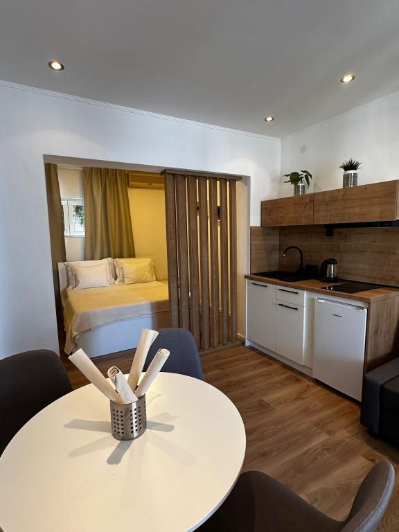 Vrlo lijepi i čisti apartmani. Klima uređaj radi dobro. Domaćini su vrlo ljubazni i uslužni. Nekoliko minuta hoda od plaže i centra. Parking je dostupan pored zgrade.