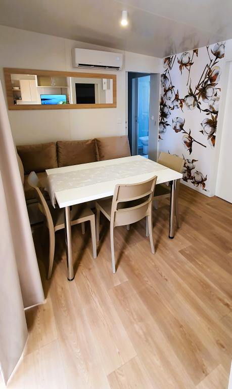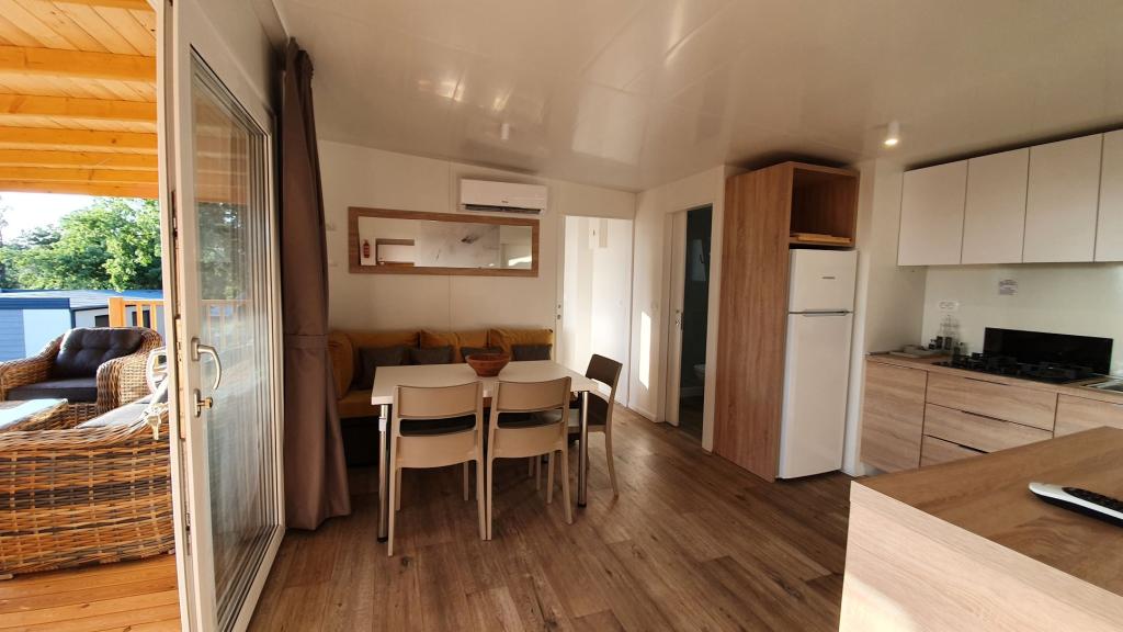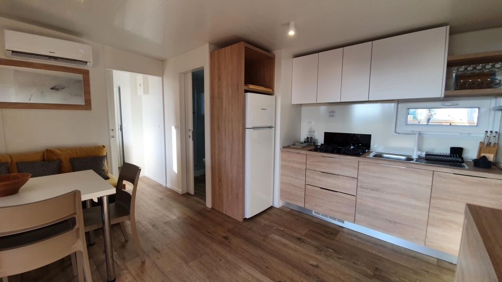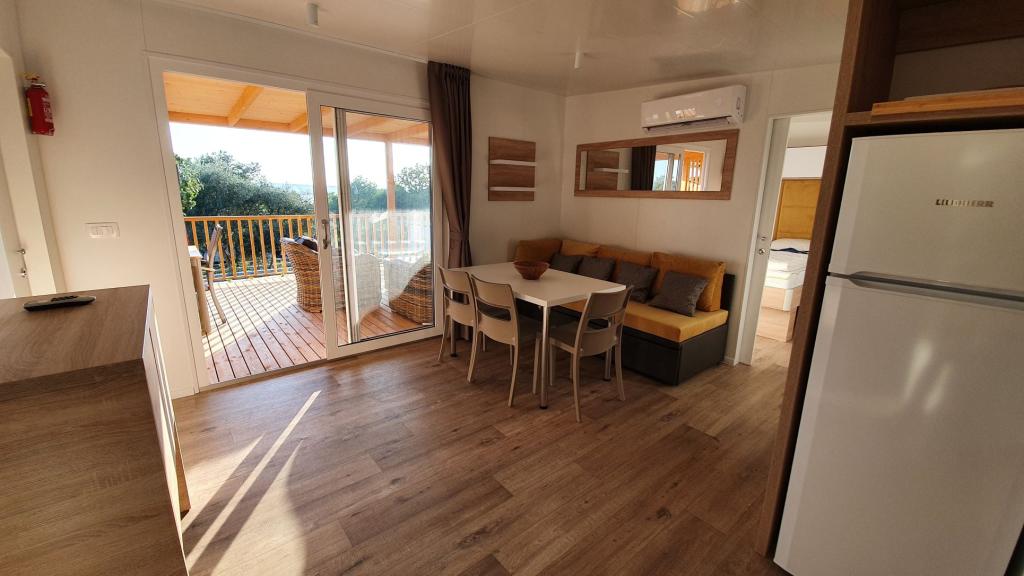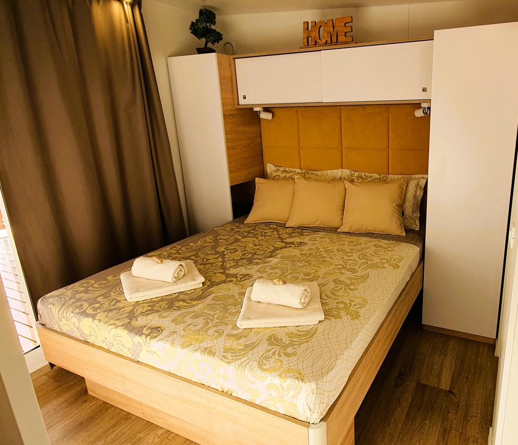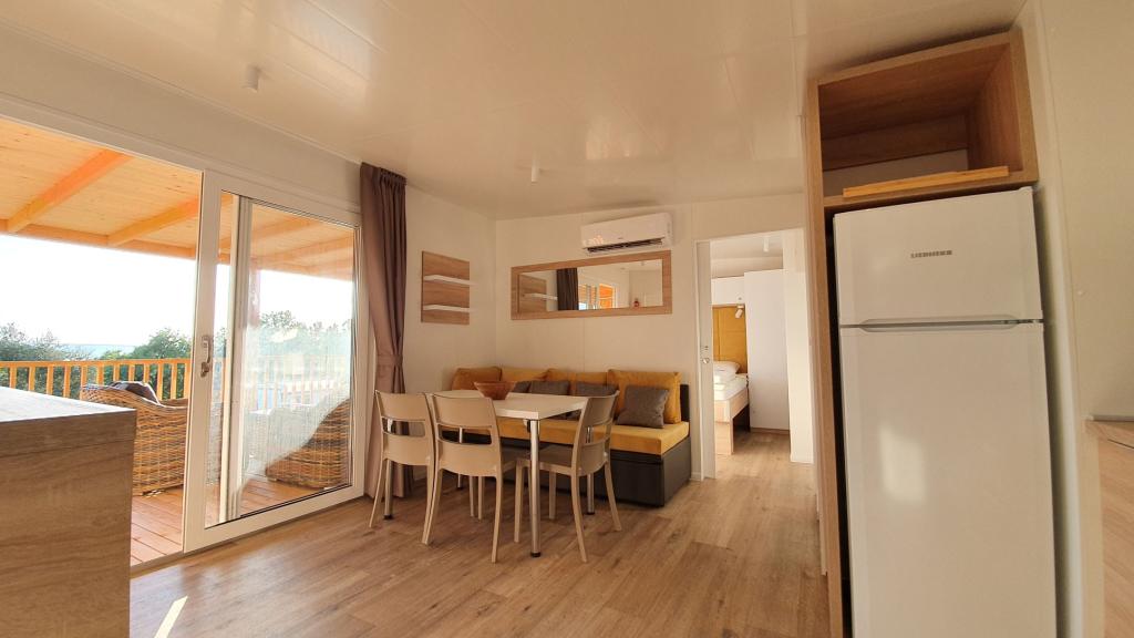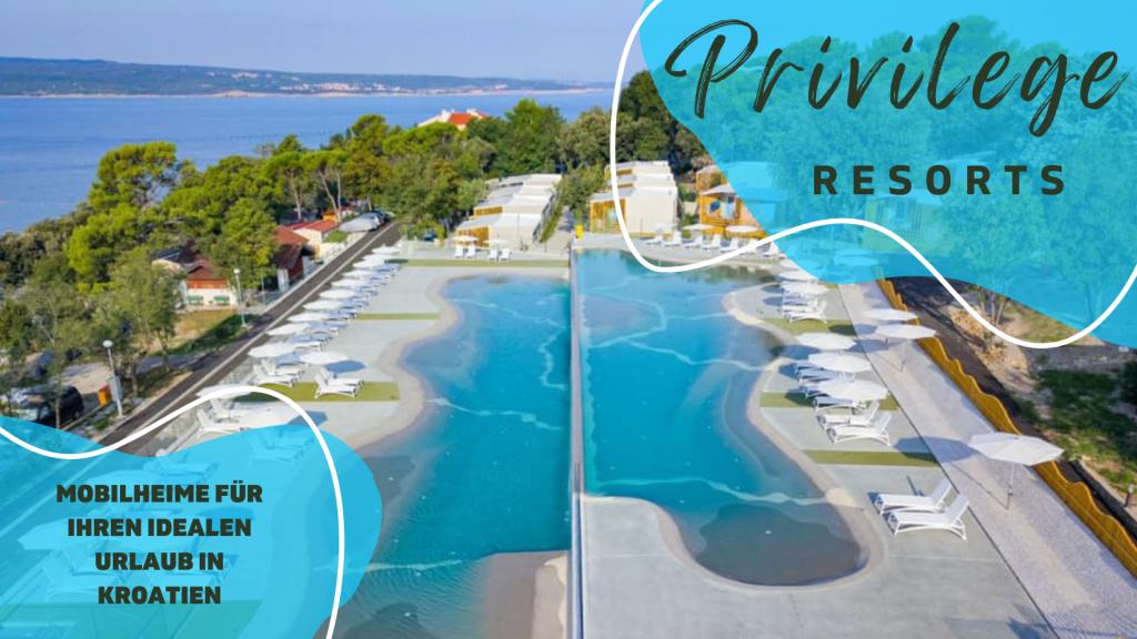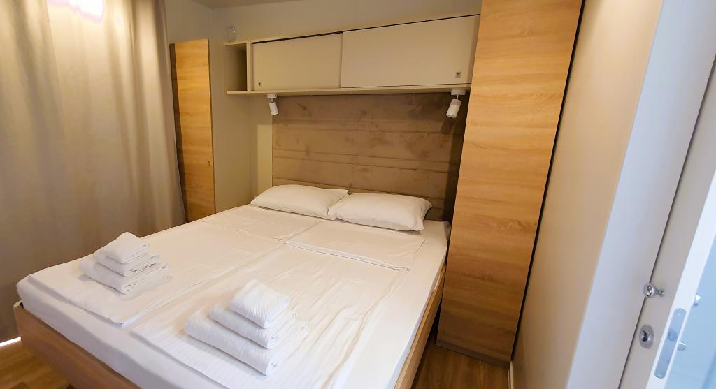 Naše mobilne kuće za odmor imaju najbolje pogodnosti za druženje s ljudima koji su Vam najvažniji. Naša velika, nova mobilna kućica ima jednu spavaću sobu s bračnim krevetom i dvije sobe s dva odvojena kreveta, potpuno opremljeni dnevni boravak, kuhinju i dvije kupaonice, parkirno mjesto u blizini i prostranu terasu s luksuznom vrtnom garniturom i plinskim roštiljem. Naše mobilne kućice pogodne su za obitelji od šest do osam osoba. Opustite se na terasi, uz bazen na ležaljkama ili na jednoj od predivnih plaža. Privilege Resorts je vaše idealno ljetovalište.