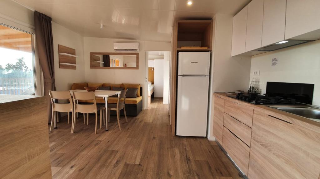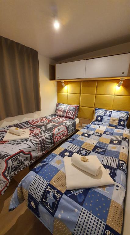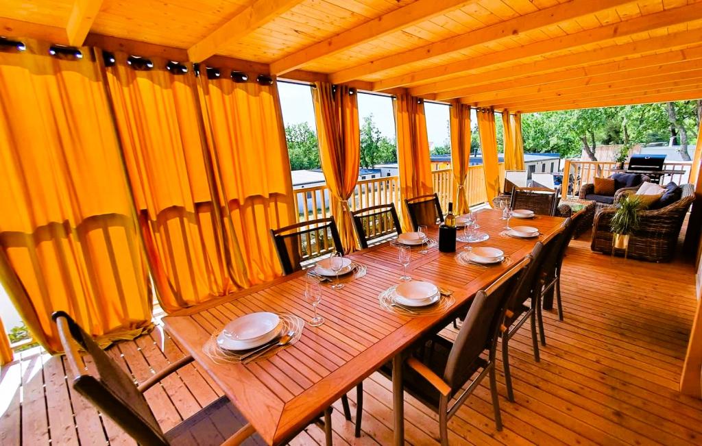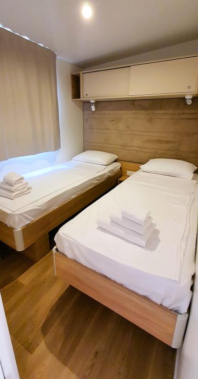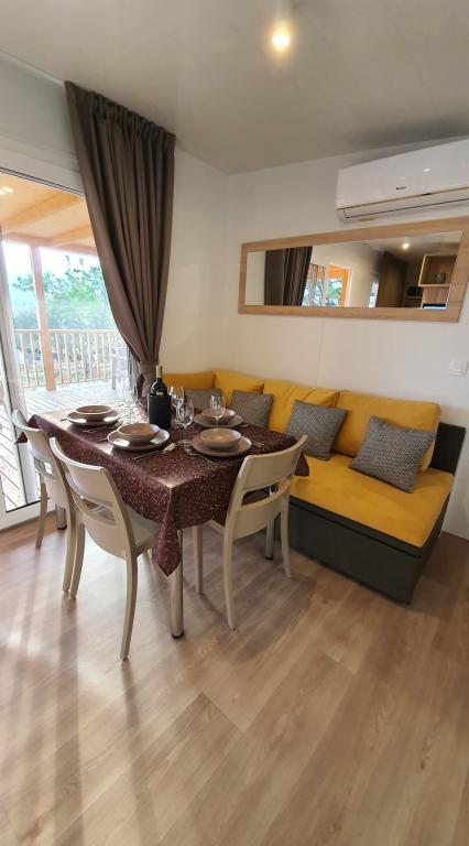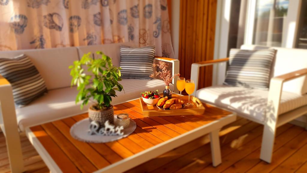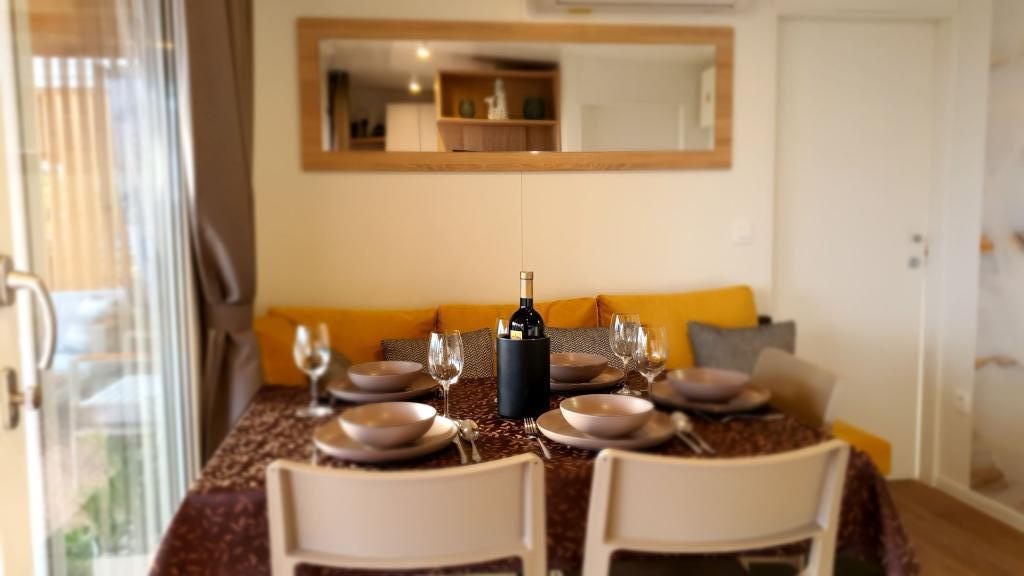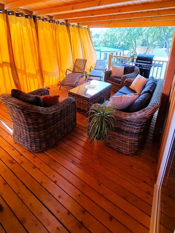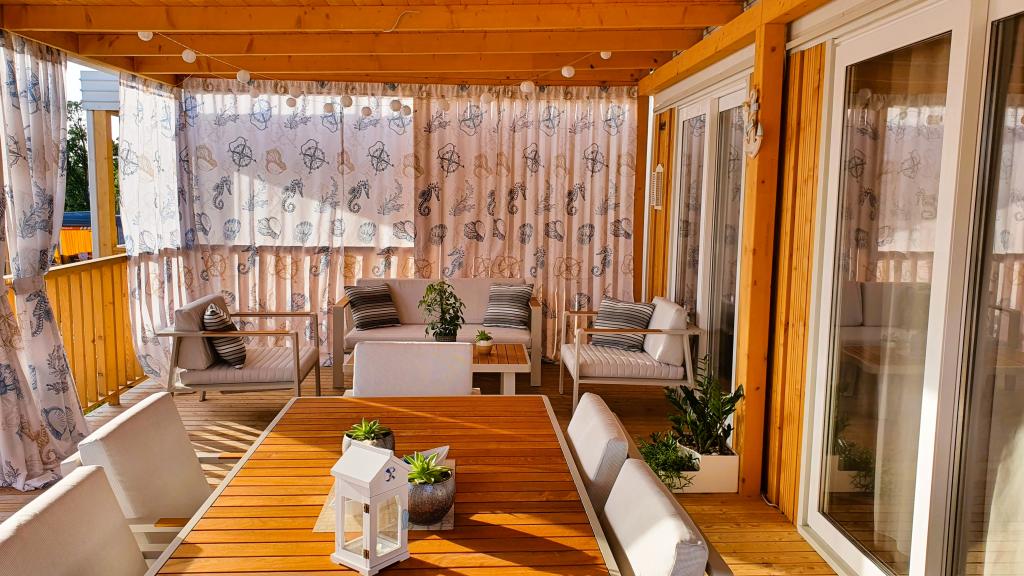 Naše mobilne kuće za odmor imaju najbolje pogodnosti za druženje s ljudima koji su Vam najvažniji. Naša velika, nova mobilna kućica ima jednu spavaću sobu s bračnim krevetom i dvije sobe s dva odvojena kreveta, potpuno opremljeni dnevni boravak, kuhinju i dvije kupaonice, parkirno mjesto u blizini i prostranu terasu s luksuznom vrtnom garniturom i plinskim roštiljem. Naše mobilne kućice pogodne su za obitelji od šest do osam osoba. Opustite se na terasi, uz bazen na ležaljkama ili na jednoj od predivnih plaža. Privilege Resorts je vaše idealno ljetovalište.