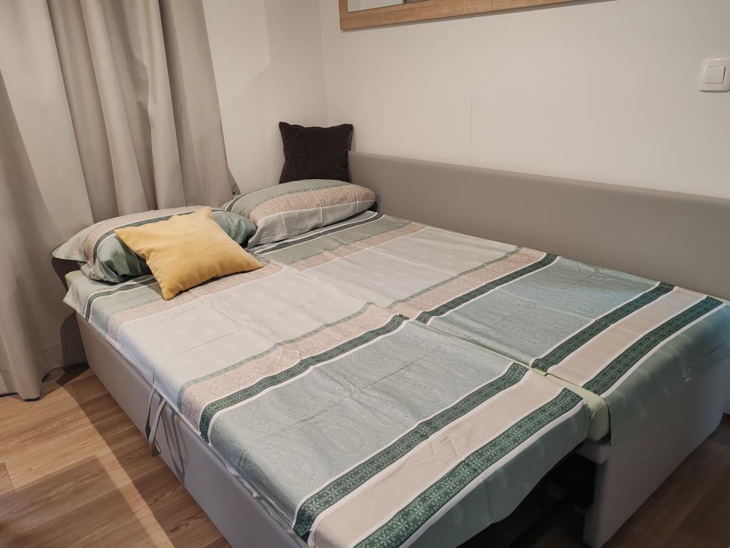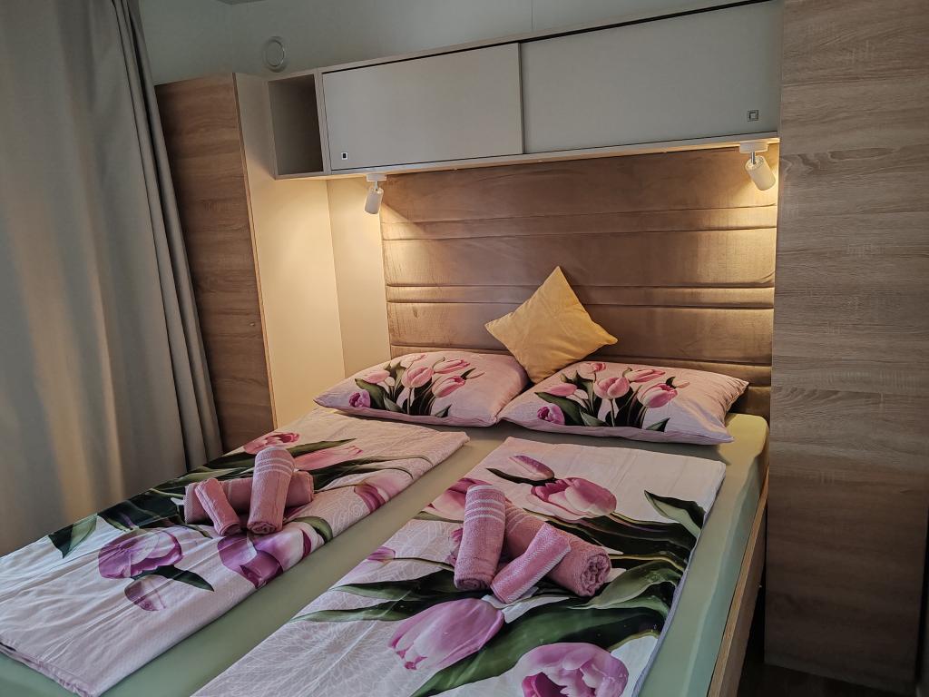 U frižideru se nalazi rashlađeno piće dobrodošlice koje je besplantno. Također nešto za najmlađe. Nudimo krevetić za bebe kompletno opremljen. U kampu se nalazi kompleks bazena sa pripadajajućim rekvizitima (lezaljke,suncobrani),te je besplatno za korištenje tokom boravka.