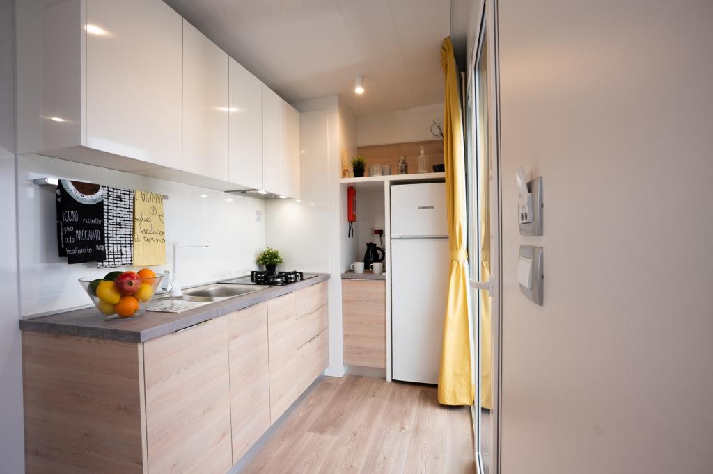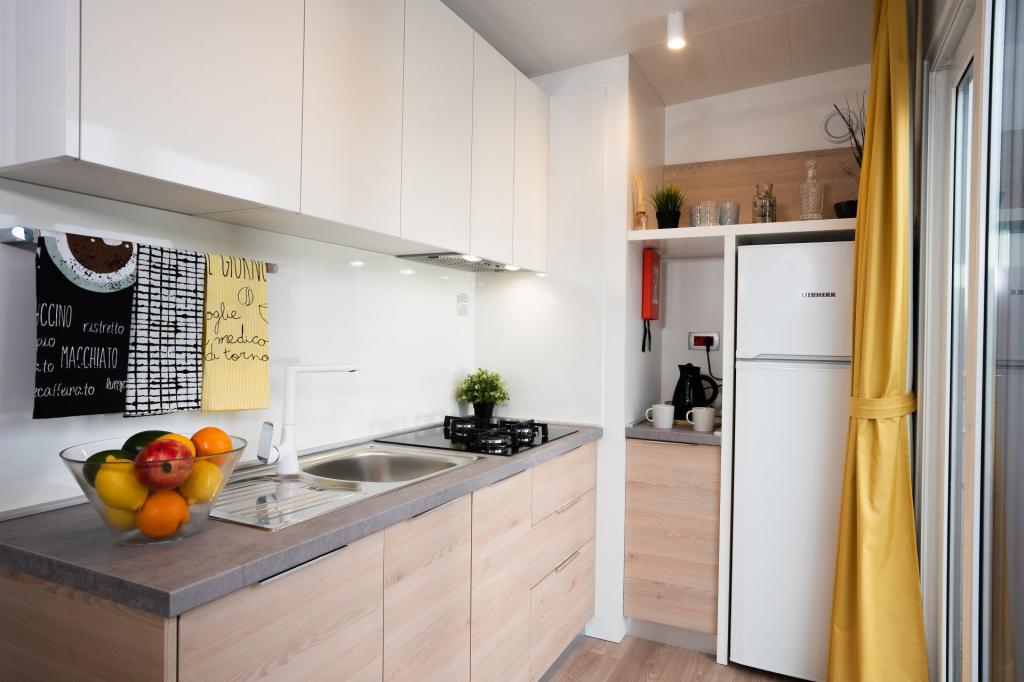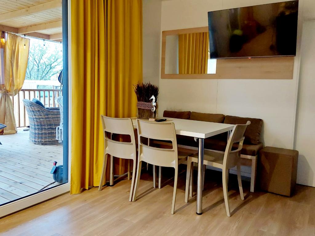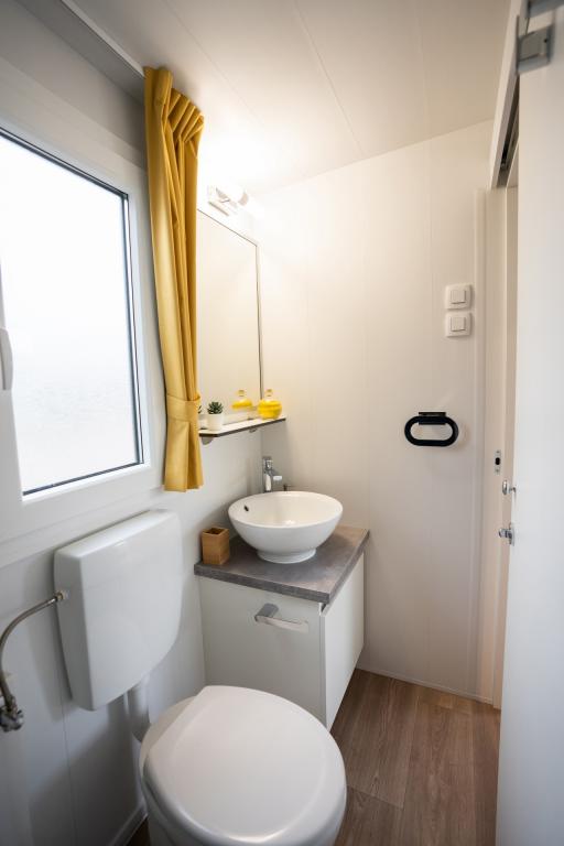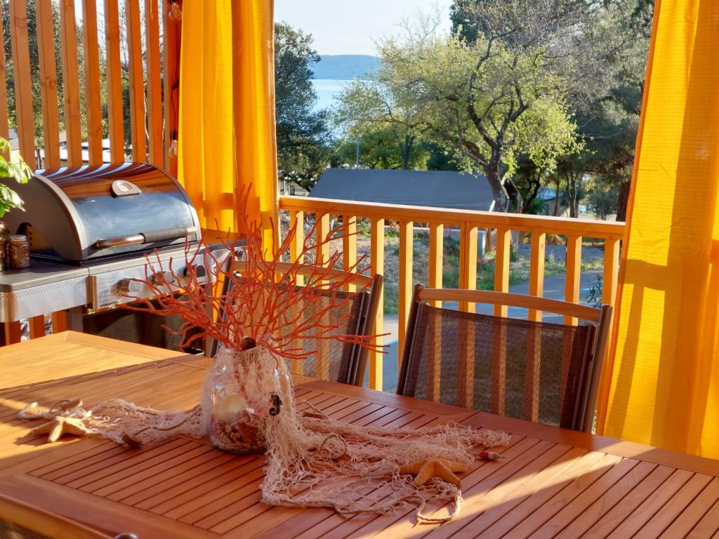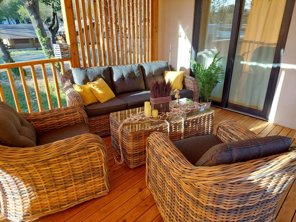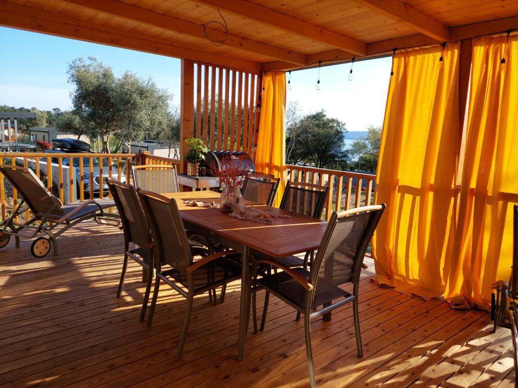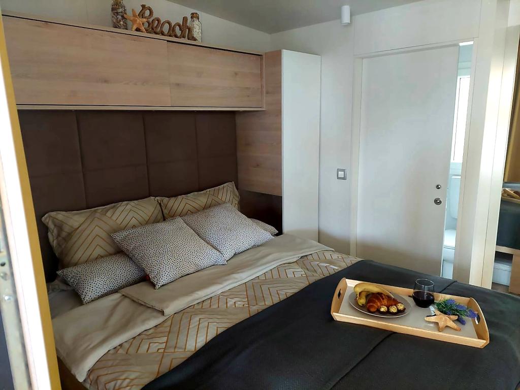 Vrhunsko uređenje mobilne kućice i jedinstvena mikroklima pružaju garanciju savršenog odmora. Zrake sunca naći će put do vas uz jutarnju kavicu ili omiljeno piće na natkrivenoj terasi, koja skriva dodatno iznenađenje za romantičare, hedoniste i sportske tipove uz mnoge dodatke za savršen odmor. Uz kućicu vam na raspolaganje dajemo: 2 x SUP daske, kolica za plažu (Bollerwagen), 1x elekrični romobil , 1x mountain bike, elektični roštilj. U kampu je izgrađen novi bazen (vanjski bazen ) na dvije kaskade i igralište za djecu su savršen dio cjelokupnog doživljaja za velike i malene. Kamp ima mnoge dodatne sportske sadržaje, izlete, tečaj ronjenja u blizini rent a boat.