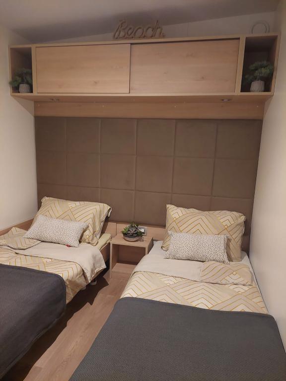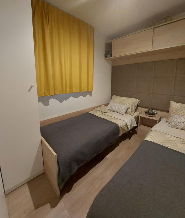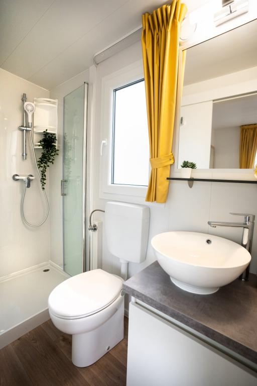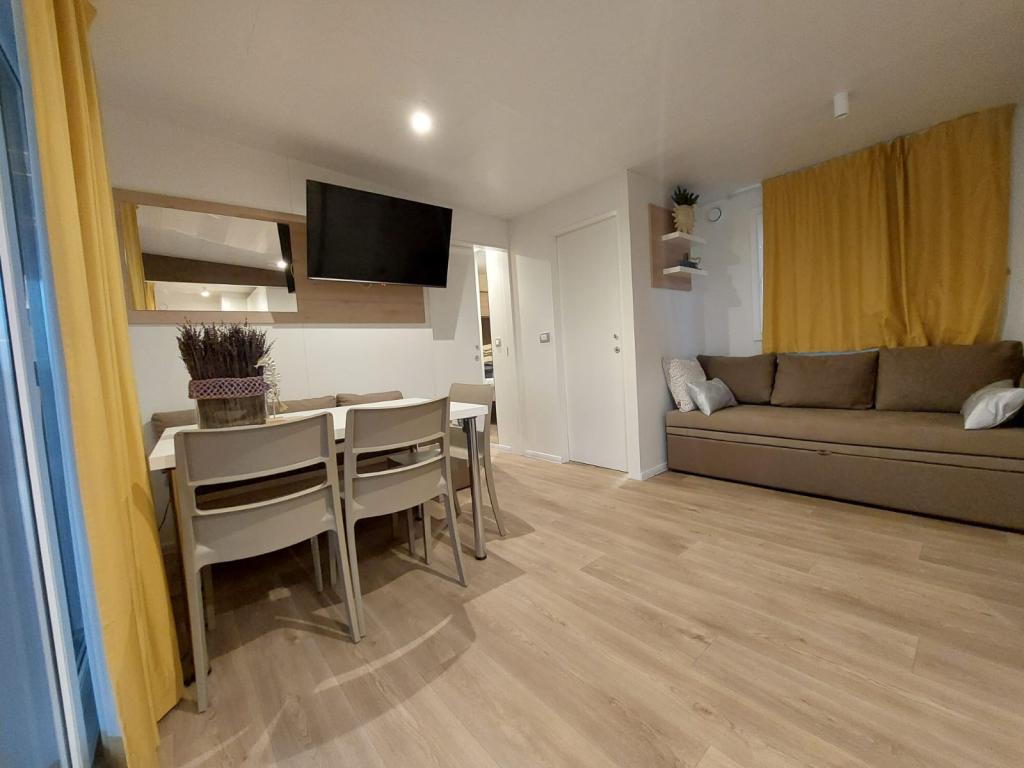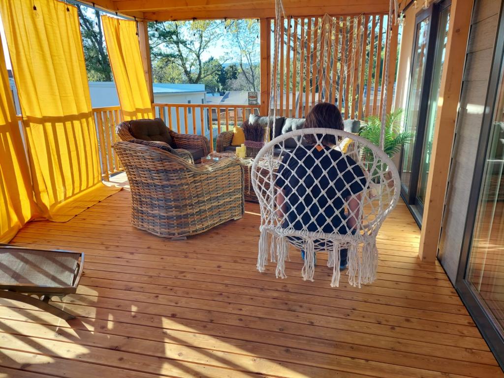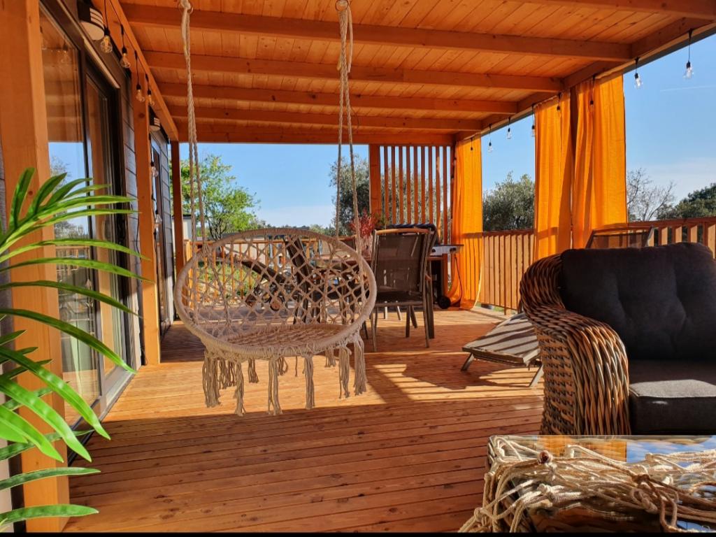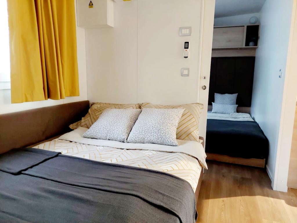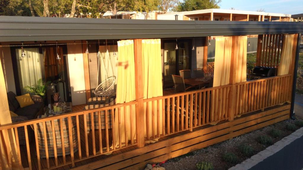Vrhunsko uređenje mobilne kućice i jedinstvena mikroklima pružaju garanciju savršenog odmora. Zrake sunca naći će put do vas uz jutarnju kavicu ili omiljeno piće na natkrivenoj terasi, koja skriva dodatno iznenađenje za romantičare, hedoniste i sportske tipove uz mnoge dodatke za savršen odmor. Uz kućicu vam na raspolaganje dajemo: 2 x SUP daske, kolica za plažu (Bollerwagen), 1x elekrični romobil , 1x mountain bike, elektični roštilj. U kampu je izgrađen novi bazen (vanjski bazen ) na dvije kaskade i igralište za djecu su savršen dio cjelokupnog doživljaja za velike i malene. Kamp ima mnoge dodatne sportske sadržaje, izlete, tečaj ronjenja u blizini rent a boat.