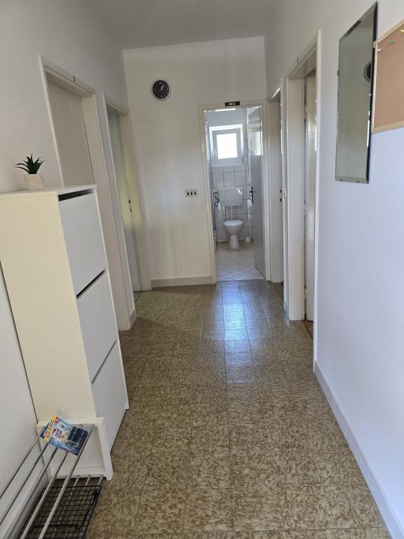 Kat obiteljske kuće u mirnom dijelu mjesta sa 2sobe,kuhinjom/dnevnim boravkom,terasom i dvorištem,2 kupaonice,idealno za obitelj ili prijatelje.Do centra,trgovine,tržnice(sezonske),kafića,bus stanice i crkve ima 60-100metara.Hitna pomoć je udaljena 200 metara,toliko ima i do restorana te 200 metara do mora i šljunčane plaže.40 km je udaljen aerodrom Zadar,12 km do autoputa izlaz Rovanjska.Nacionalni park Paklenica je udaljen 3 km,ostali NP-Kornati,Krka,sjeverni velebit su udaljeni sat vremena vožnje,NP Plitvice su udaljene 2 sata vožnje.Besplatni parking u dvorištu.Kat se iznajmljuje cijeli i nije moguće iznajmiti samo jednu sobu.Cijena je za cijeli apartman neovisno od broja osoba. Kućni ljubimci bez obzira na veličinu nisu dozvoljeni.