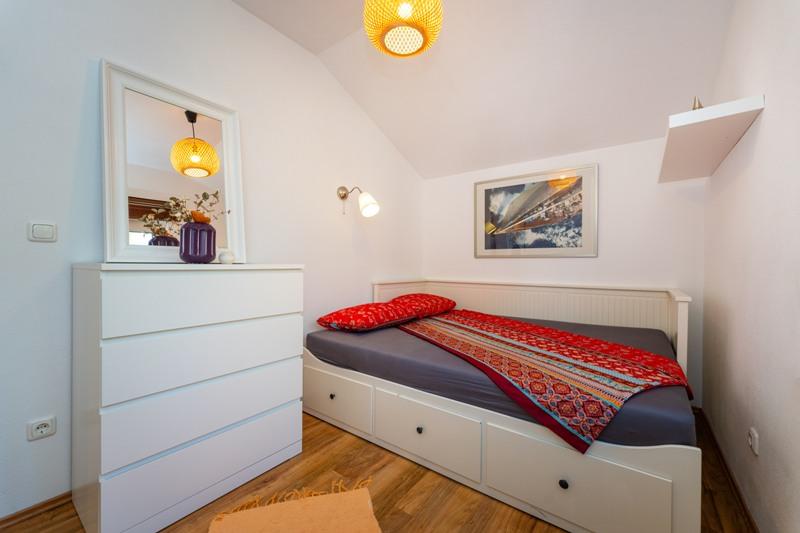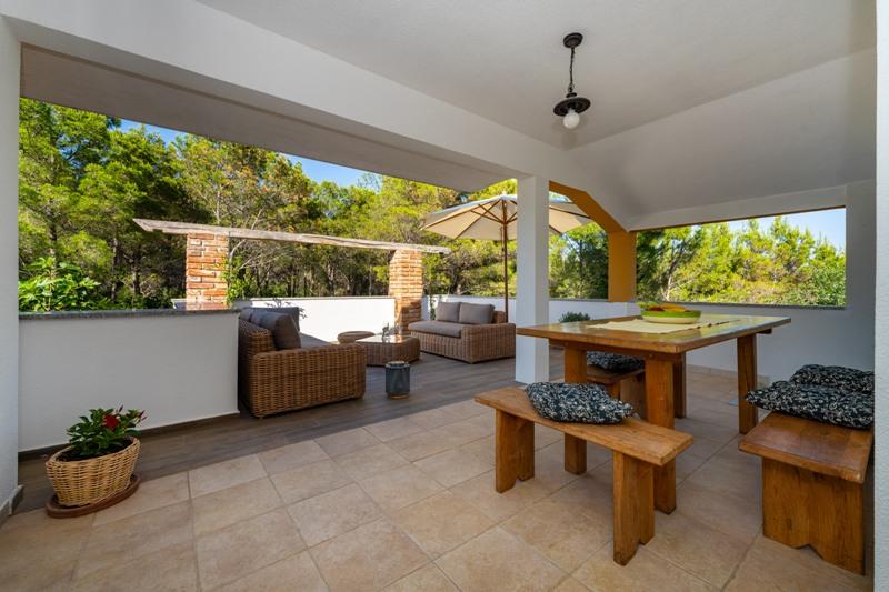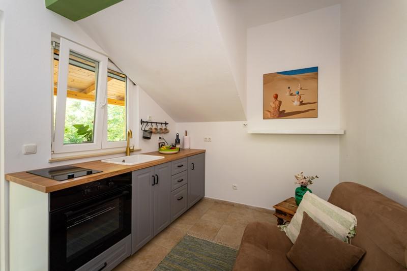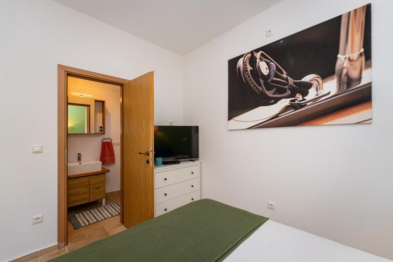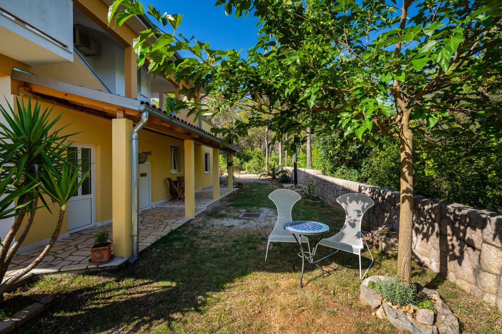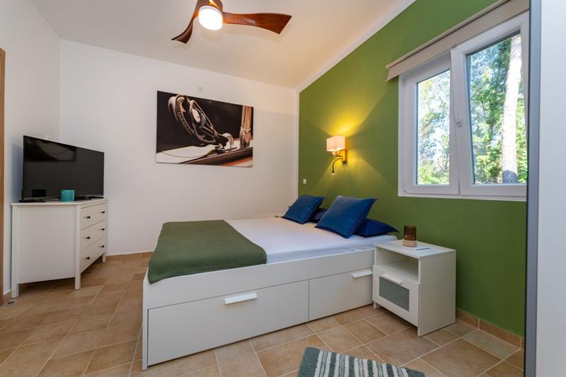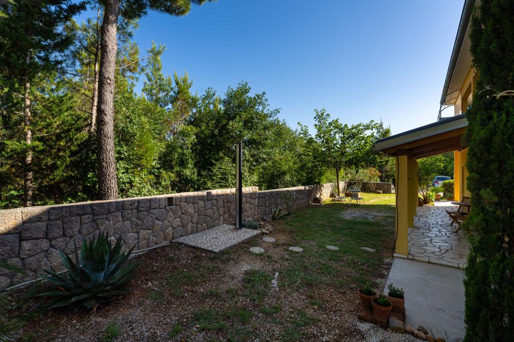 Objekt se nalazi na mirnoj lokaciji, uz borovu šumu i nedaleko od centra Selina ( 250 m ). Idealan odabir za miran obiteljski odmor ili odmor za parove daleko od svakodnevne buke i gužve. Ispred kuće se nalazi lijepo uređen vrt gdje gosti mogu roštiljati ili se opustiti na ležaljkama u sjenci borova. U objektu se nalaze 2 apartmana - 1 apartman za 4 osobe ( 2 spavaće sobe ) i 1 apartman za 2 osobe. Opremljeni su sa svim sadržajima koji su potrebni za ugodan i opušten odmor. U svakom apartmanu nalazi se SAT-TV, klima uređaj i wi-fi. Vrtni tuš je također na raspolaganju.