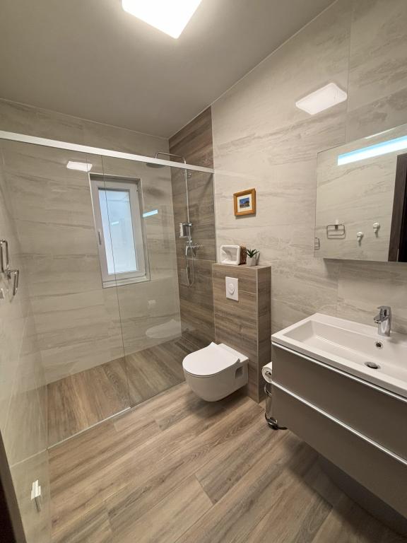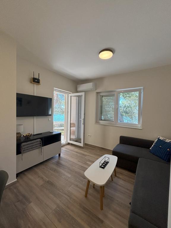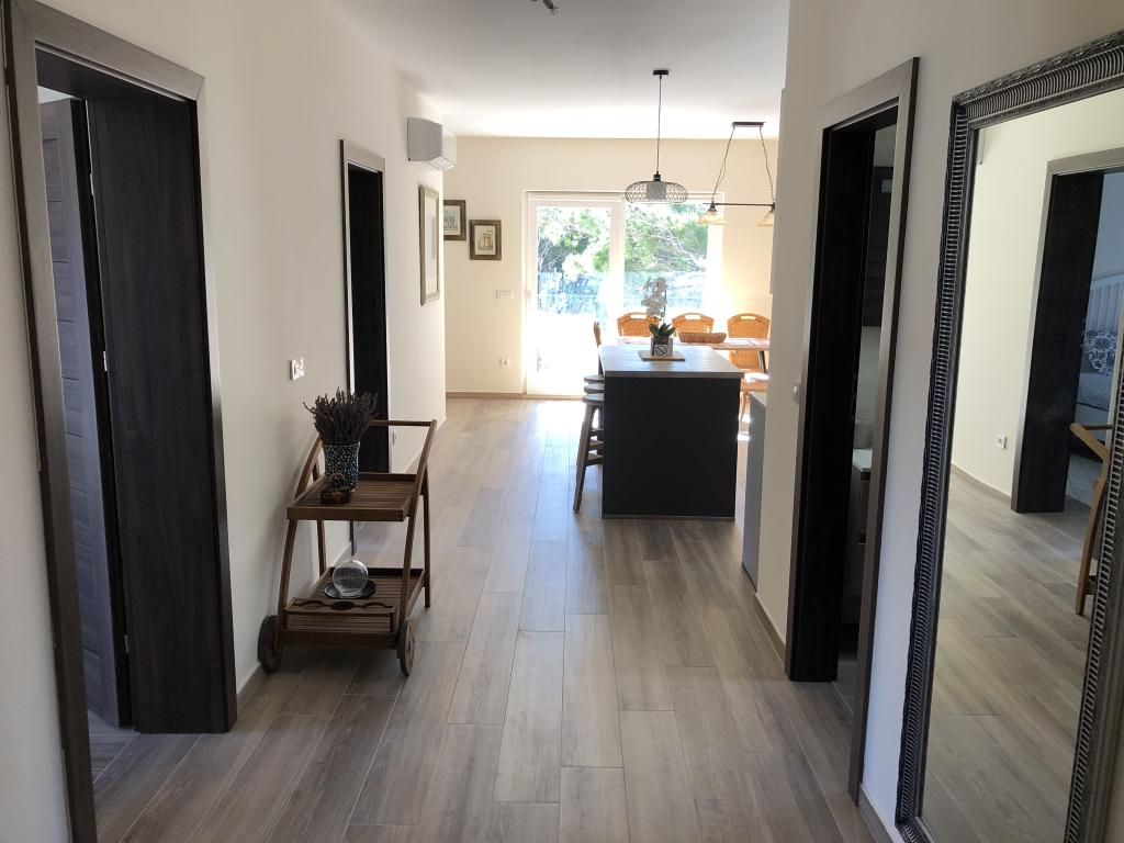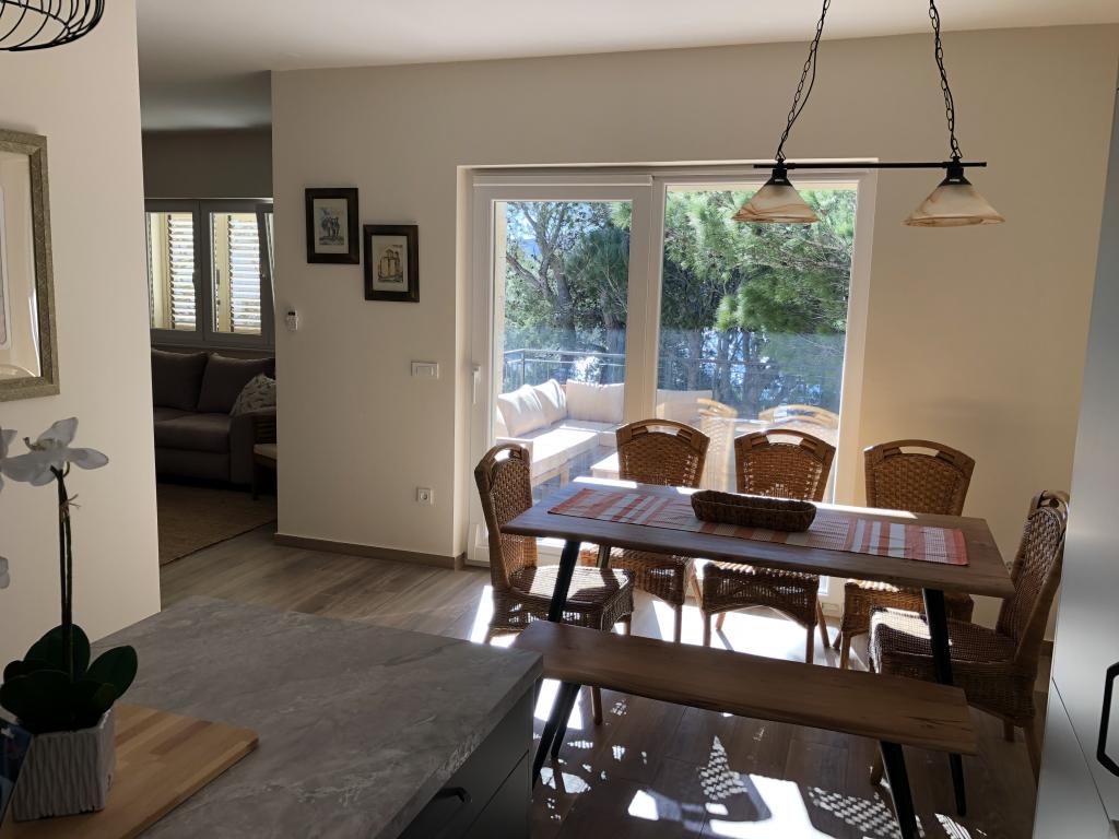 Prekrasna nova vila sa apartmanima direktno uz more - pristup moru je doslovno sa terase apartmana. Moderan apartman sa svom potrebnom opremom, besplatnim ograđenim parkingom, vanjskim tušem, visećim mrežama između moćnih borova na imanju, besplatnim wifi-om i još mnogo toga. Ono što treba istaknuti su ljubazni vlasnici vile, koji čine da se osjećate kao kod kuće. Preporuka za pojedince i obitelji s djecom!