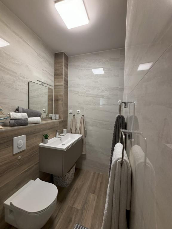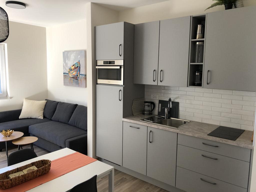Lokacija je bila prekrasna, pogled na more odmah s balkona a do obale je stvarno 2 metra. Stan je bio super čist, imali smo sve što smo htjeli, sve je dobro održavano. Tu je bio i dječji krevetić sa slatkom posteljinom i ručnik s likovima iz bajki za našu kćer. Dostupna je bila i dječja sjedalica za WC. Kuhinja je kompletno opremljena, ništa ne nedostaje. Domaćini su bili fantastični, uslužni i vrlo ljubazni. Preporučili su mjesta koja treba posjetiti, mjesta za jelo i stvari koje treba raditi. Odmah dobijeno parking mjesto u vrtu. WLAN je također uključen. Igralište u blizini.