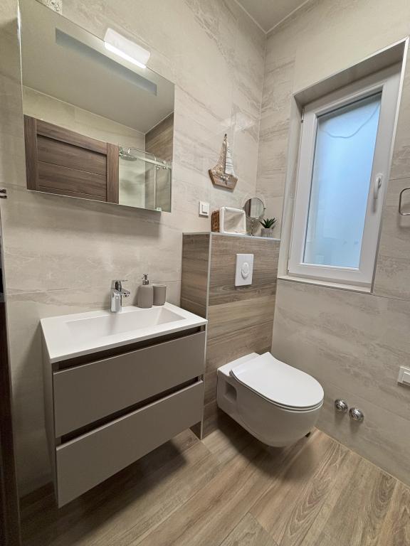 Prelijepa nova vila uz more i plažu, apartman vrhunski opremljen modernim stvarima i namještajem, parking u dvorištu, sve je u krugu 50 m, slastičarna, restorani, kafići, šetnica, mala marina, trgovine, tržnica.... Terasa apartmana je najbolji dio, božanstveni trenuci uz more, jutarnje kavice u miru i tišini, miris borova i mora, savršeni zalasci sunca.....dođite i doživite, opisati se riječima ne može. A sav taj ugođaj ne bi bio moguć bez vlasnika vile, Slavena i Mile, divan bračni par, savršeni domaćini. Gostoljubivi iznad svega, uvijek spremni pomoći, priskočiti, na raspolaganju su svojim gostima koje neizmjerno cijene, te već kod dolaska osjećate da ste dobrodošli. Mila, Slavene, hvala za sve, bio je ovo odmor iz snova, vidimo se do godine!