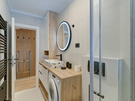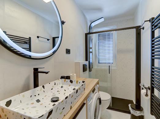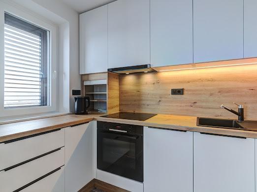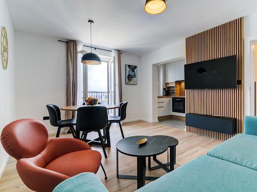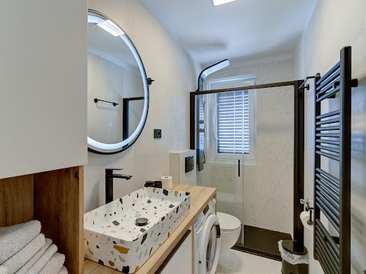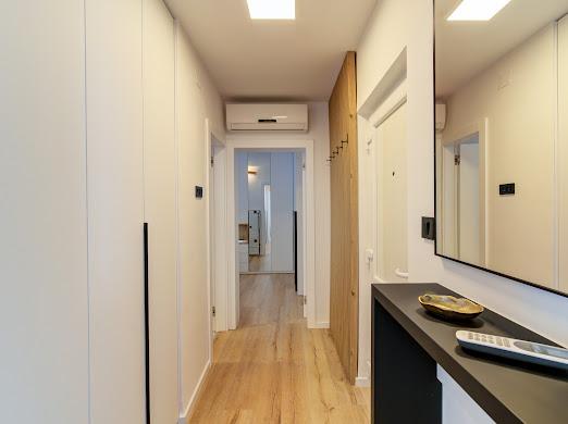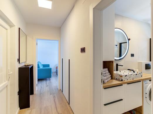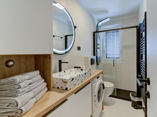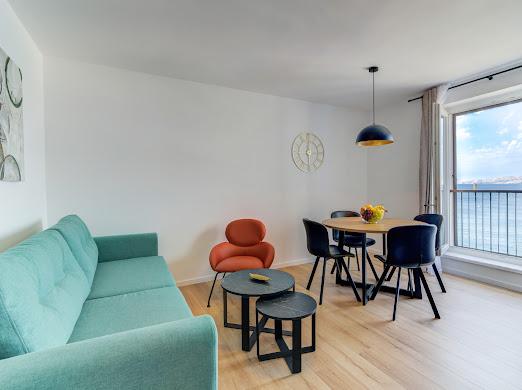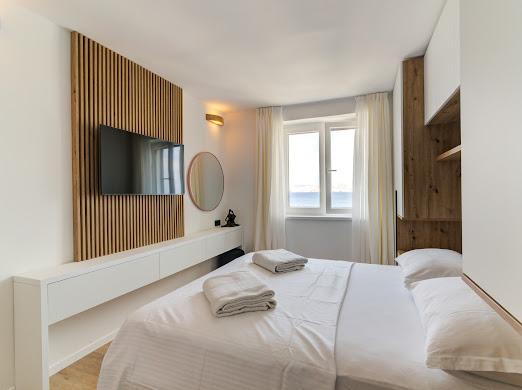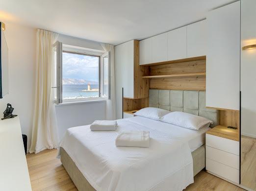 Kompletno i suvremeno novouređeni apartman u najstrožem centru grada, u luci, smješten prvi red do mora ( 10 m od mora ). Apartman je veličine 42 m2 u kojem je spavaća soba, kupaona, garderoba, dnevni boravak i kuhinja. U spavaćoj sobi i dnevnom boravku su TV velikog ekrana i apartman je klimatiziran. Iz apartmana je predivan pogled na centar, luku, Velebitski kanal i susjedne otoke Krk, Prvić i Goli otok. Do najbliže plaže (Škver) udaljenost je 3 min. hoda a odmah u luci je i ponuda najma brodica i turističkih izleta. Gradska tržnica je udaljena 1 min. hoda prema centru a vis a vis na 2 min hoda je trgovački centar Konzum. Slobodan parking je iza zgrade i domaćin će se potruditi naći mjesto prije dolaska gosta.
