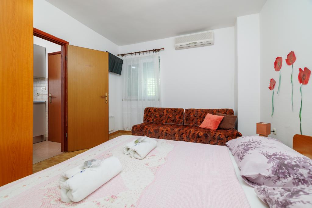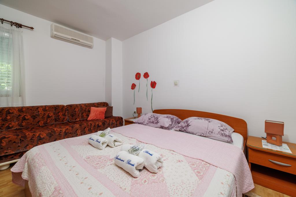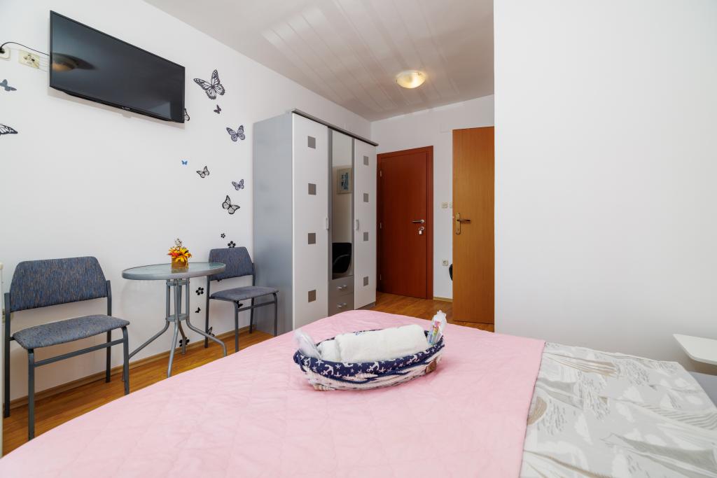 Komforna soba , u sklopu sobe je kupaonica, balkon, frizider. Nalazi se u izrazito mirnom dijelu grada a svega 5 minuta od plaže. Klimatizirana je, te je osiguran parking za vozilo. U vrtu se nalazi roštilj i stol sa stolicama, tako da je moguce i ručati. Mario i njegova obitelj su vrlo uslužni i uvijek su tu za sva pitanja. Hvala Vam na kratkom ali prelijepom boravku. Tina i Tomislav