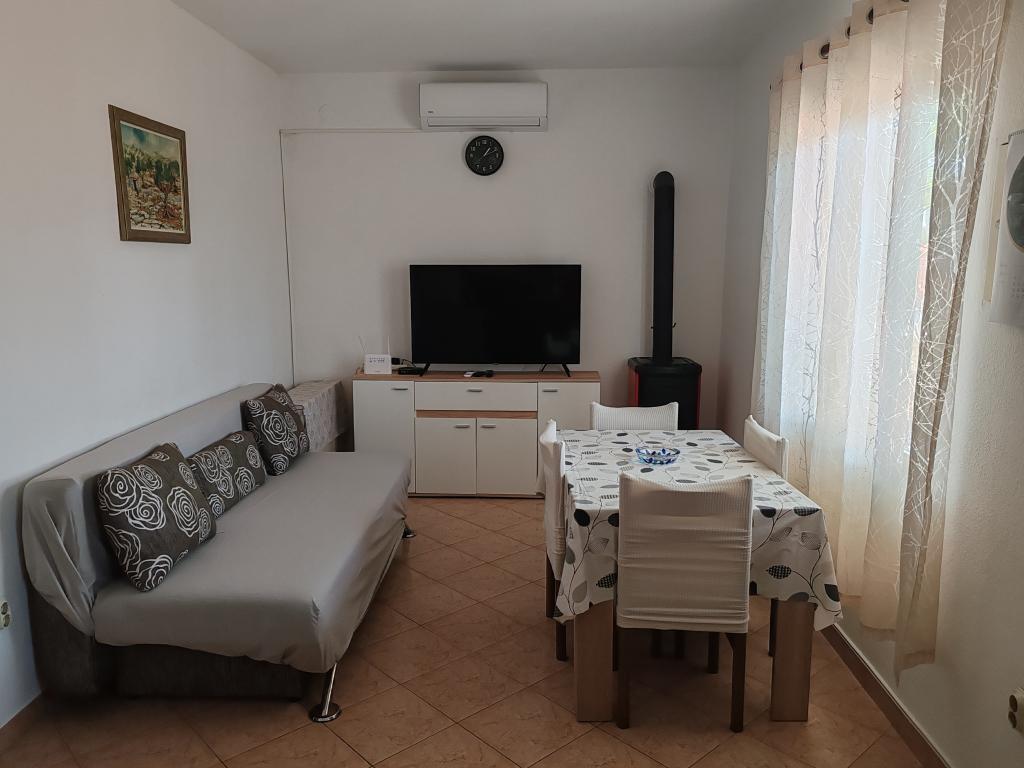 Gostima nudimo smještaj u kompletno uređenom apartmanu smještenom 20 metara od mora i uređene betonske plaže, pristupom okućnici, besplatnim parkingom i roštiljem. Javna plaža udaljena je samo 200 metara, kao i trgovina, cafe bar... U objektu se nalaze svi potrebni uređaji za domaćinstvo, aircondition, perilica za rublje, te perilica za suđe.