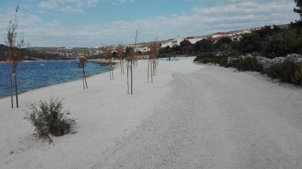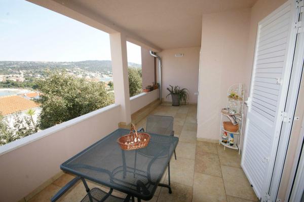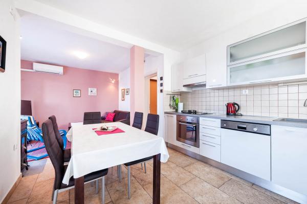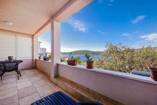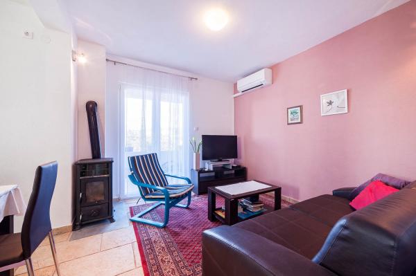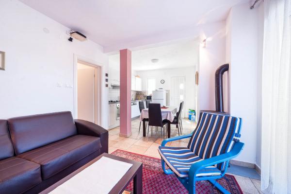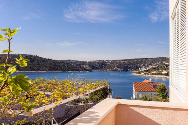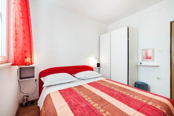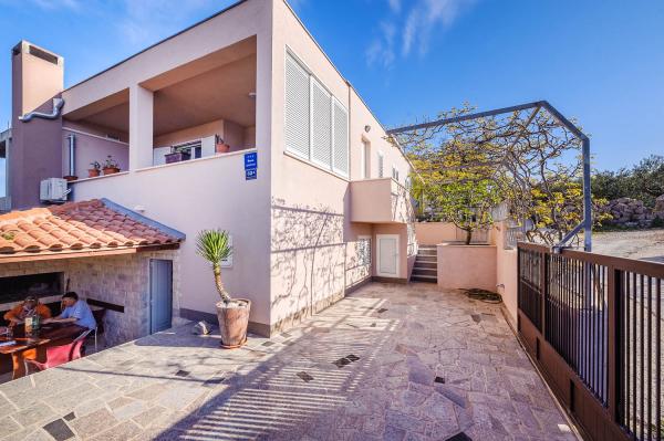 Apartman je zapravo samostalna kuća sa posebnim ulazom blizu mora, suvremeno opremljena u mirnom dijelu naselja. Ima veliku terasu sa pogledom na more, dvije spavaće sobe s bračnim krevetima, wc kupatilo i pomoćni wc. stroj za pranje rublja. U dnevnom boravku je krevet na razvlačenje za 2 osobe. Kuhinja je opremljena perilicom za pranje suđa. Ima 3 parkirna mjesta.