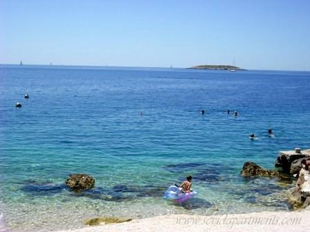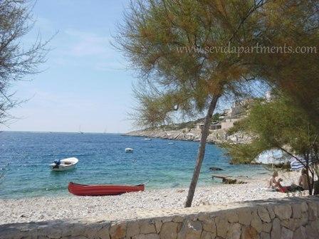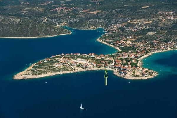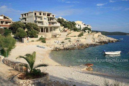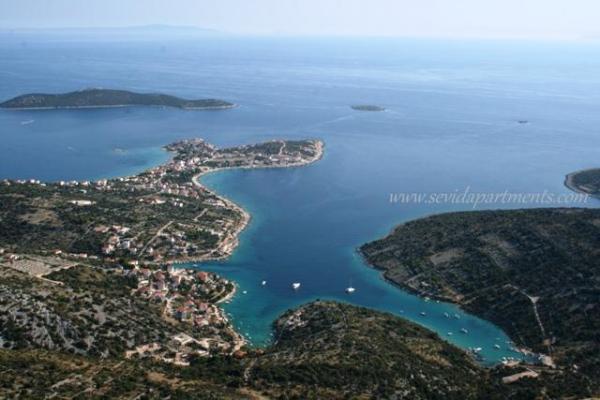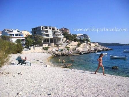 Kuća sa dva apartmana u prvom redu do mora, 10 m do šljunčane plaže. Dvosobni apartman u prizemlju ( 4 +1 ) i jednosobni apartman ( 2+2 ) na prvom katu imaju prekrasan pogled na more, plažu i otoke. Osigurajte miran odmor u mjestu Sevid - Trogir rivijera, uživajući ljepotama sunčane uvale i kristalno čistog mora, u gotovo skrivenom dijelu Hrvatske obale.