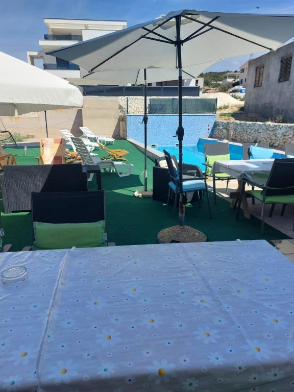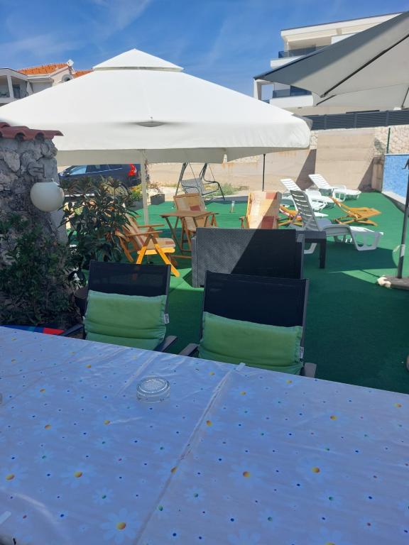 Mirno i tiho susjedstvo. Ležaljke, suncobrani, kajaci dostupni na plaži i sve to za cijenu. U vrtu se nalazi bazen i roštilj. Parkiranje. A4 prostrane sobe s velikim balkonom (proveli smo prvi tjedan tamo), A2 + 2 (drugi tjedan boravka) nešto manje, čiste sobe. Vlasnici lijepo, prijateljski, korisni. Lijepa obitelj 2 + 2 (djeca u dobi od 7 i 11 godina). U trgovinu i bar 2 min. (samo trgovina i bar u mjestu, do plaže maksimalno 1 minutu, voda na ovom mjestu vrlo je čista. Preporučujem Dinko stan svima.