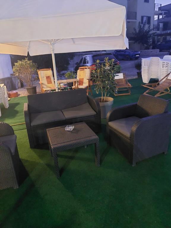 komforna apartmana, prekrasan pogled s terase, u obliku bonusa bazen u vrtu, dobro opremljena privatna plaža, bar i reštika tri minute od plaže ...