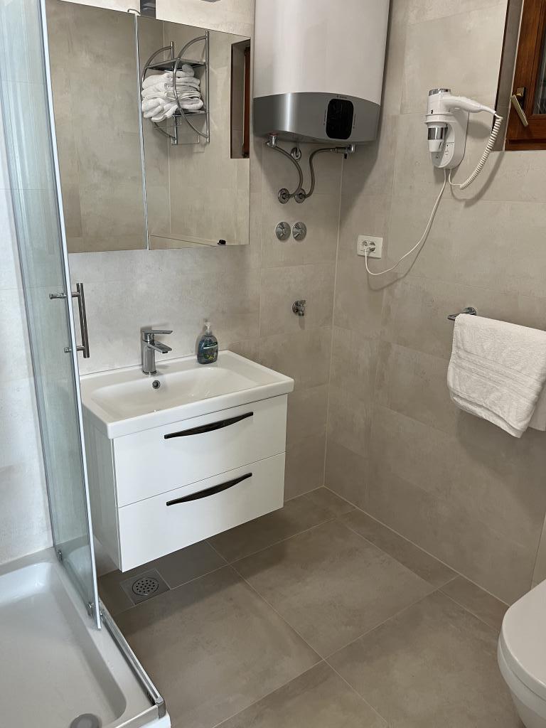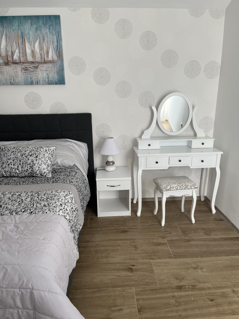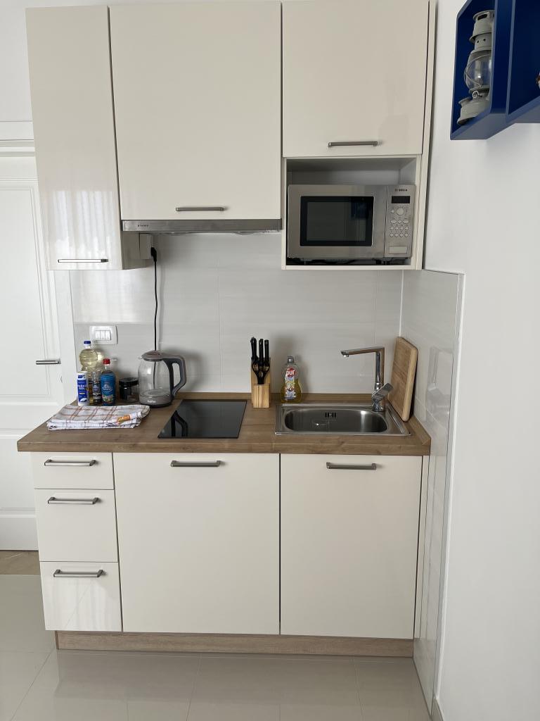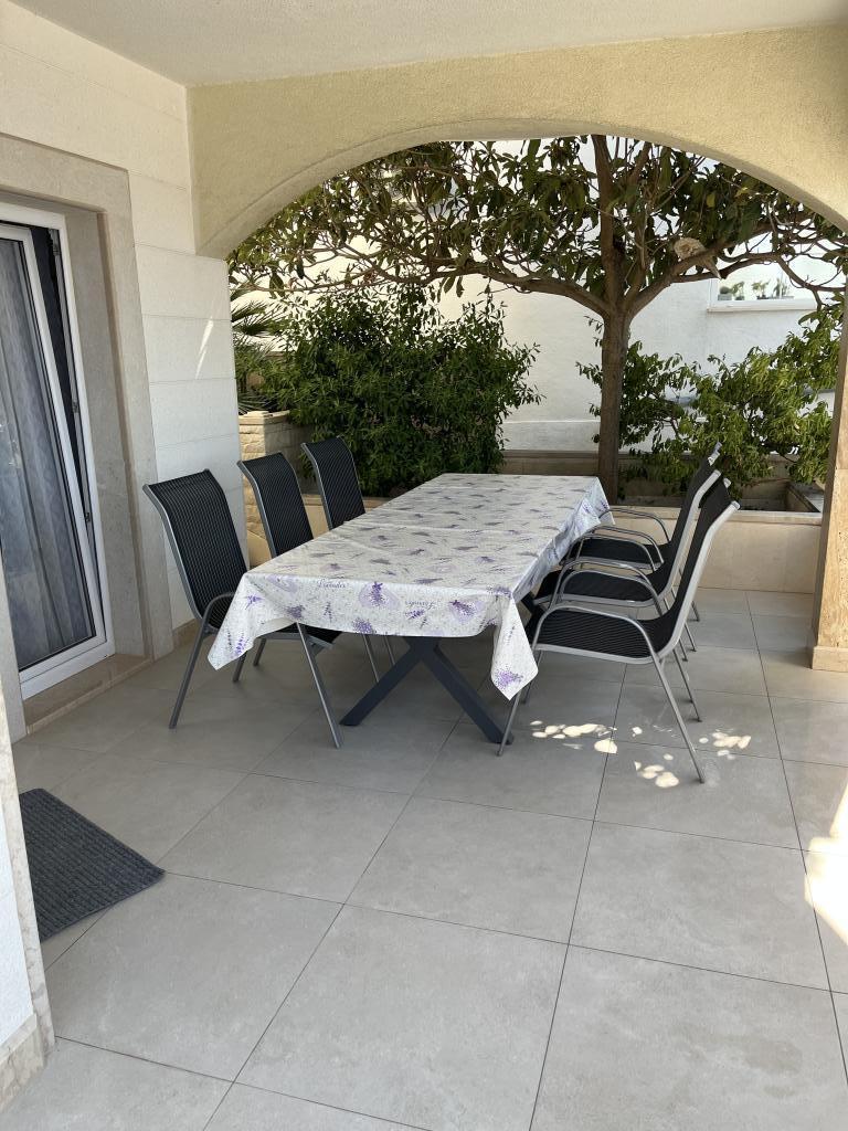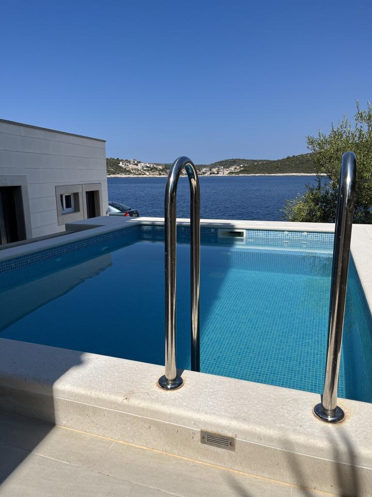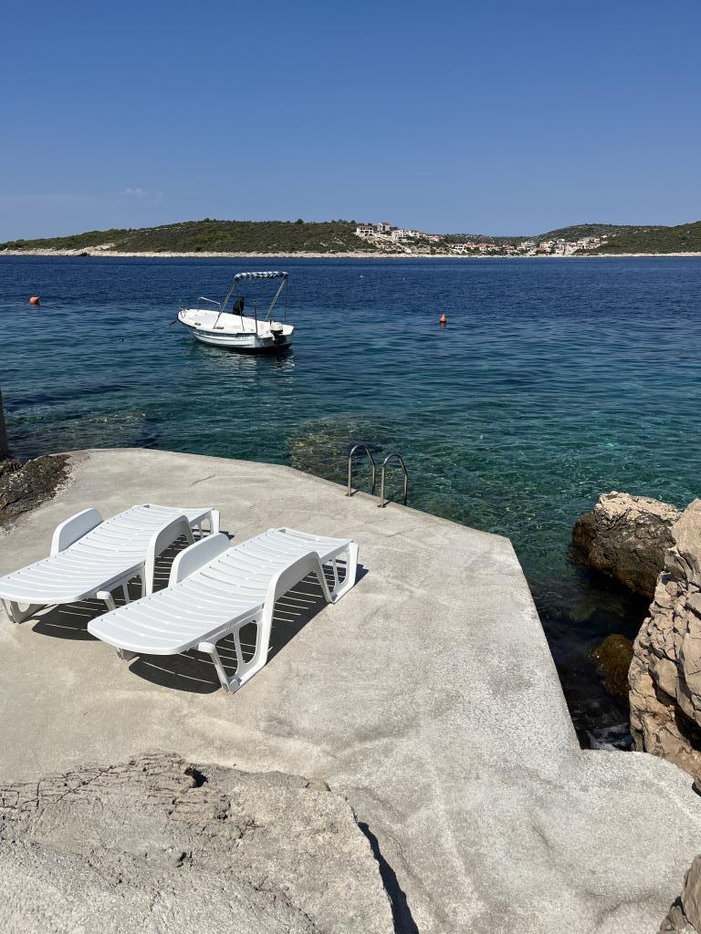 Apartmani imaju jednu sobu sa bračnim krevetom i jedan pomoćni lezaj . Kompletno opremljenu kuhinju sa perilicom sudja, napom, pećnicom, klimom. Perilica rublja se nalazi u odvojenoj prostoriji u prizemlju kuće. U dvorištu je grijani bazen i tuš. Ispred kuće je plaža sa ležaljkama . Apartmani imaju pogled na more.