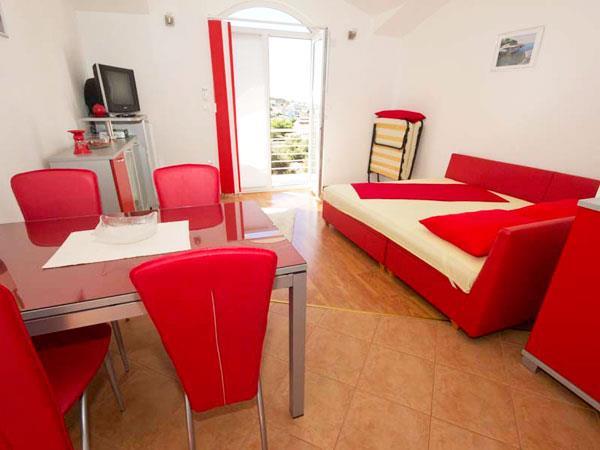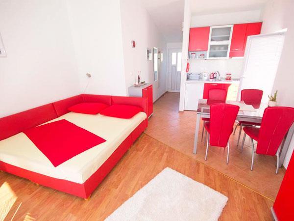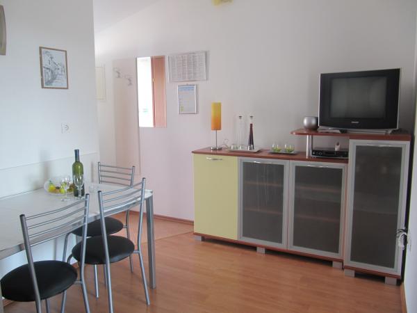 "Crveni" stan, i bili smo odmah impresionirani. Čeka nas čiste, mirisne, moderna, lijepo uređena, s dva balkona. Vlasnici su vrlo otvorene. Za nas i gosti su u sjeni na prekrasnoj terasi s pogledom na krajolik, koji je u susjedstvu u malom njegovan park, organizirala je pravi dalmatinski ručak. Roštilja pripremljenu orade, hobotnice na žaru s ukusnim krumpira, salate, domaće dalmatinsko vino ... vrlo dobar, odličan. Ručak je večer učenje o međunarodnom prisustvu. Svi nazočni zahvaljujući savršenom društvu. Domaćini, ali puno ti hvala za miran, lijep i nezaboravan odmor. D i J iz okolice Maribora