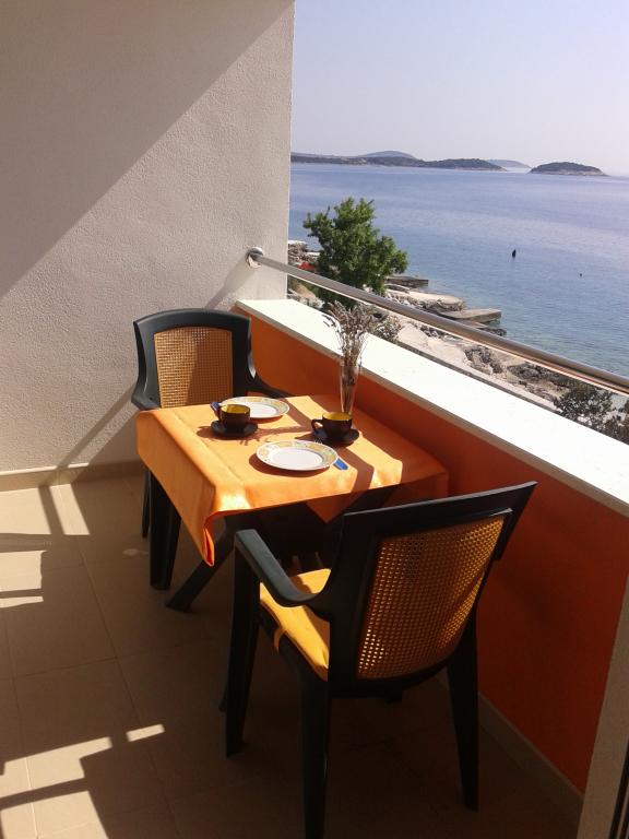 Turistička pristojba je uključena u cijenu.Kuća je smještena u mirnom dijelu mjesta Sevid. Sastoji se od četiri ista apartmana što površinom što izgledom. Smješteni su uz more tako da se sa balkona pušta prekrasan pogled na more i otoke. Ispred apartmana nema ceste tako da je sigurno za djecu. Uz apartmane je betonska plaža sa stepenicama za ulaz u more, a cca 30 m dalje je šljunčana plaža. Gostima je također na raspolaganju veliki parking. Iza apartmana su na raspolaganju dva grilla sa stolovima i stolicama a ta terasa ima također pogled na more. Imate još mogućnost i vanjskog tuširanja a zbog blizine mora možete cijeli dan uživati u kupaćim kostimima. Ne preostaje vam ništa drugo nego posjetiti nas i uz ljubazne domaćine provesti miran odmor daleko od gužve i galame. Čekamo vas!