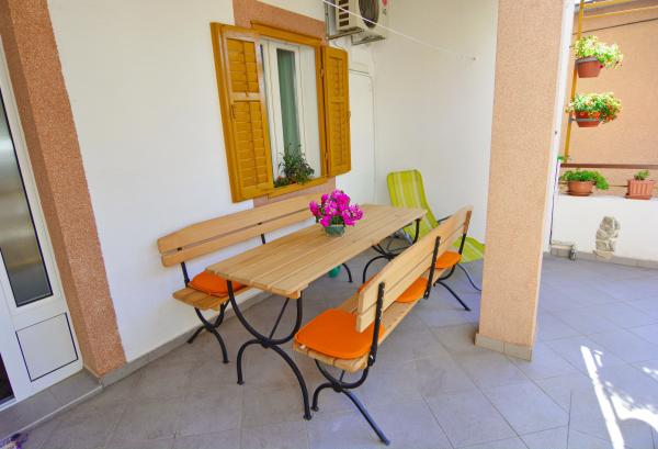 Apartman \\Aras\\ nalazi se u centru grada...stari kvart Šibenika Varoš, poznat po mirnoći i blizini povijesne gradske jezgre, pune znamenitosti kao što je katedrala sv. Jakova, dvije tvrđave, sv Mihovil i Barone... Apartman je opremljen sa svim potrepštinama za domaćinstvo, uključujući perilicu suđa i veša, SAT TV, internetski priključak, dva aparata za kavu itd. Apartman ima lijepu veliku terasu 40 m2 punu prekrasnog cvijeća...dođite i uživajte danju na plaži Banj (udaljenoj od apart. 400 m), večer u čarima raznolikih mogućnosti zabave od kafića do kulturnih događanja, te veliki izbor odličnih restorana sa bogatom ponudom domaćih specijaliteta... Želim vam ugodan odmor u našem apartmanu i našem prelijepom gradu!