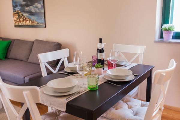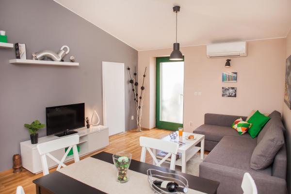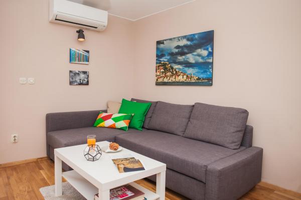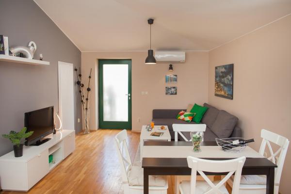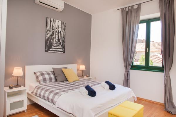 Ugodan, prostran i moderno uređen apartman kompletno renoviran 2016. godine smjestio se u vili koja datira iz 19. stoljeća. Nalazi se u staroj gradskoj jezgri i neposrednoj blizini katedrale Sv. Jakova te plaže Banj. Posebna prednost apartmana je blizina autobusnog i željezničkog kolodvora, dućana, banke i brojnih ugostiteljskih objekata. Apartman ima spavaću sobu s bračnim krevetom, kupaonicu, kuhinju i dnevni boravak te mali balkon. Gostima su na raspolaganju bežični internet, kabelska televizija i dva klima uređaja. Apartman je predviđen za komforan boravak dviju osoba uz mogućnost smještaja i do četiri osobe.