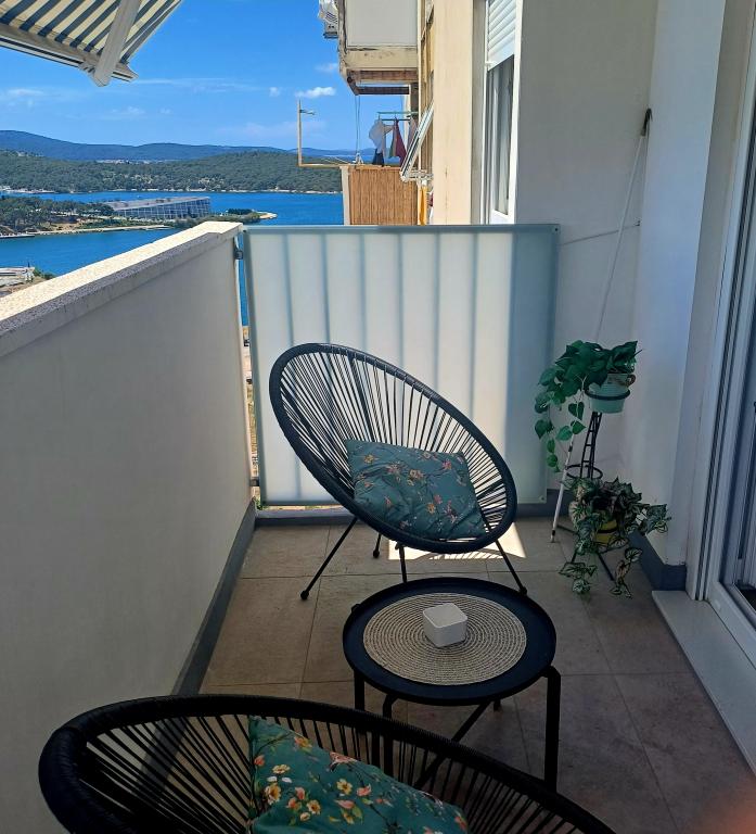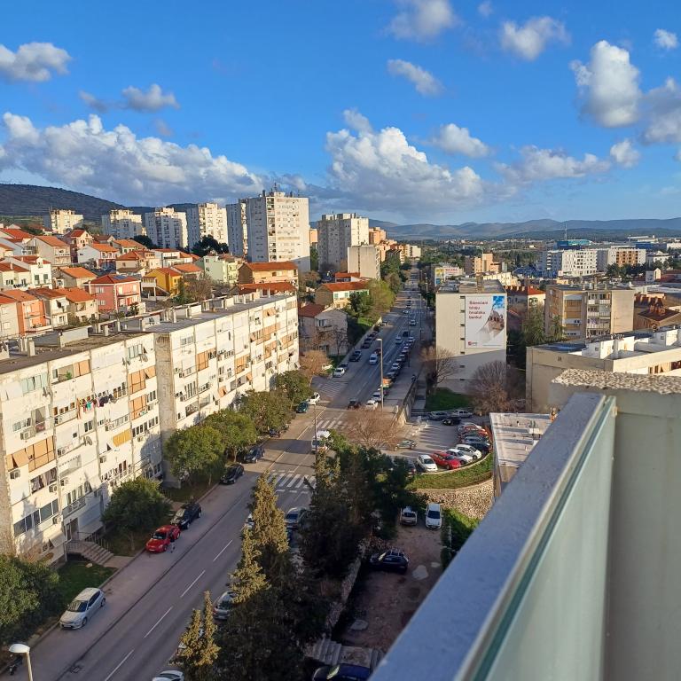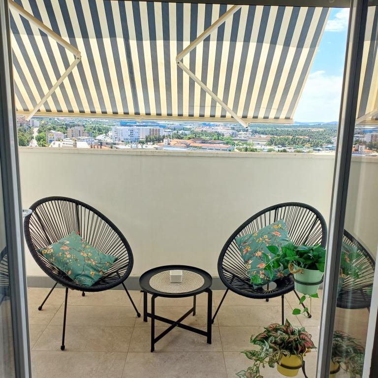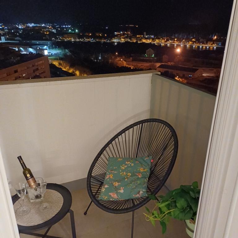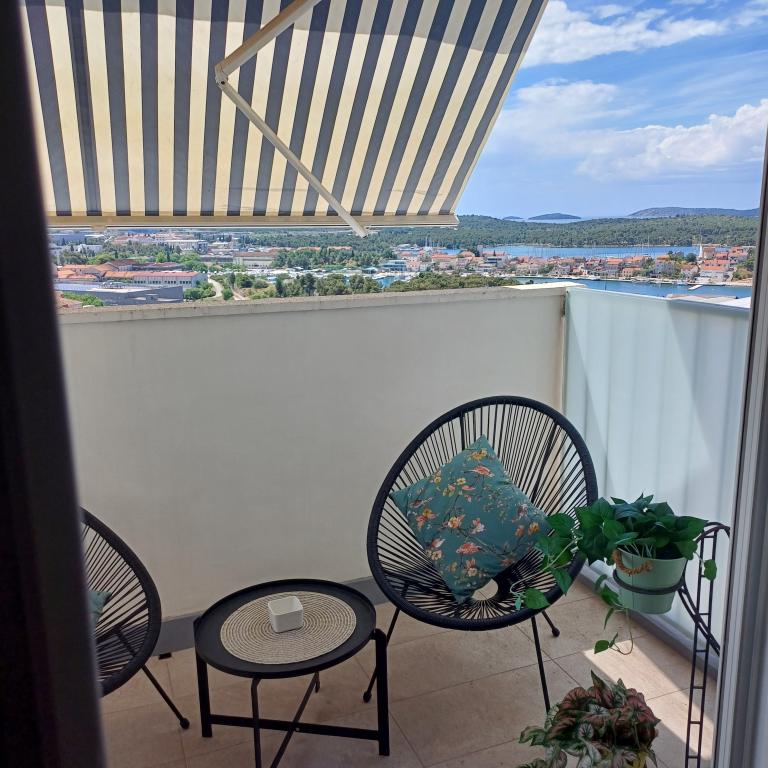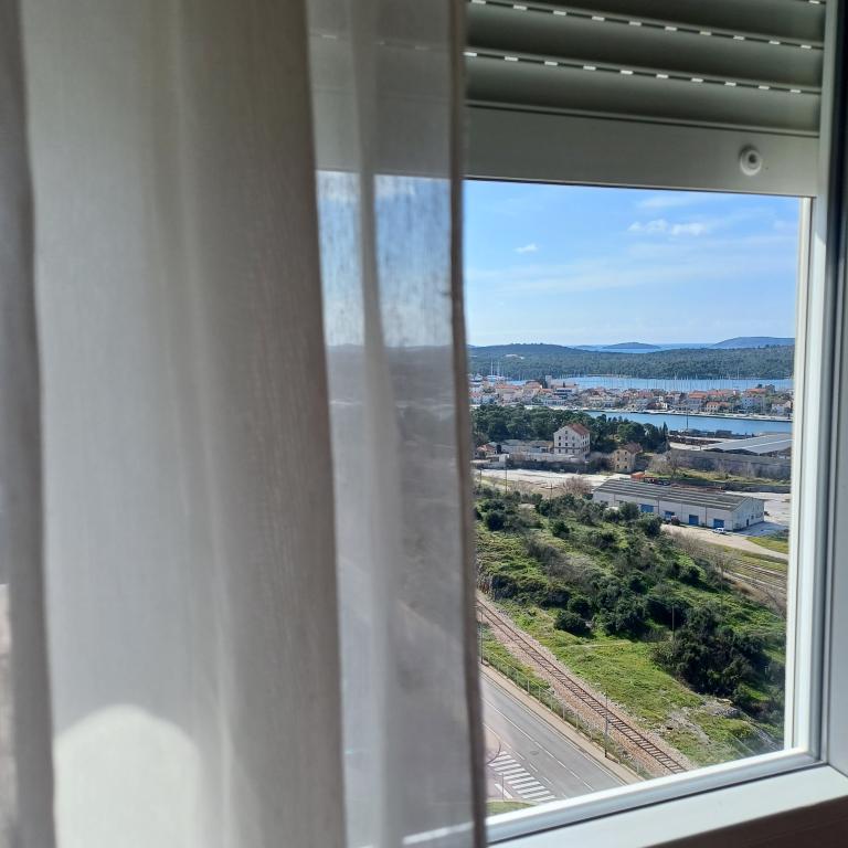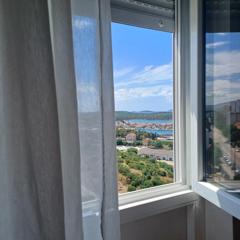 Luksuzni apartman se nalazi na 10 katu stambene zgrade u Šibeniku na odličnoj lokaciji, na 20 minuta hoda od stare gradske jezgre i gradske plaže Banj. Luksuzni smještaj sa balkonom koji pruža prekrasan pogled na more i grad gostima pruža ugodan i opuštajući boravak. Apartman se sastoji od prostrane spavaće sobe,hodnika, kupaonica sa walk in tušem, sušilom za kosu i perilicom rublja. Dnevni boravak i blagavonica su u prostoru sa modernom kuhinjom opremljenom za kraći ili duži boravak te sadrži posuđe, kuhinjski pribor, štednjak, pećnicu, perilcu suđa, hladnjak , kuhalo za vodu i aparat za kavu. Apartman je klimatiziran, a gostima je na raspolaganju tv i besplatni wifi. Javni parking se nalazi pred samim objektom. Čim izađete iz zgrade i prijeđete ulicu, na udaljenosti od 30 m se nalaze trgovina sa hranom, ljekarna i caffe bar, a banka, pošta, pizzeria, teretana , frizerski salon, shopping centar, autobusni kolodvor, pristanište za brodove su na udaljenosti od 500- 700 m.