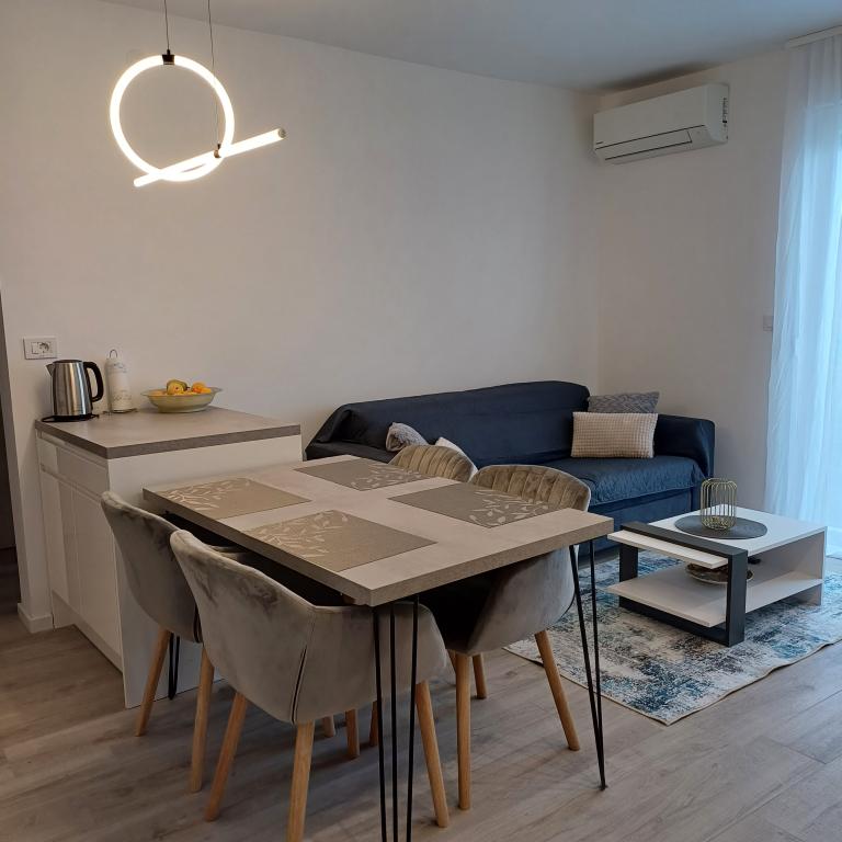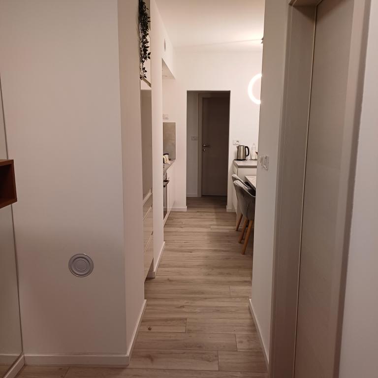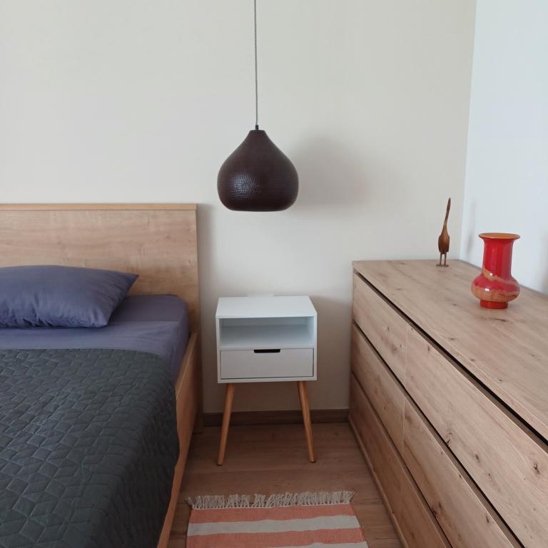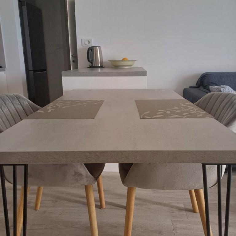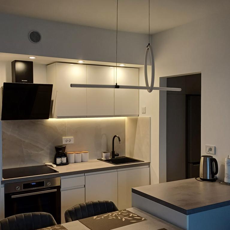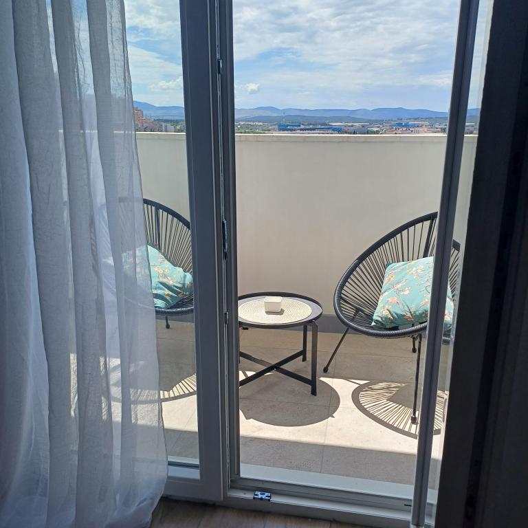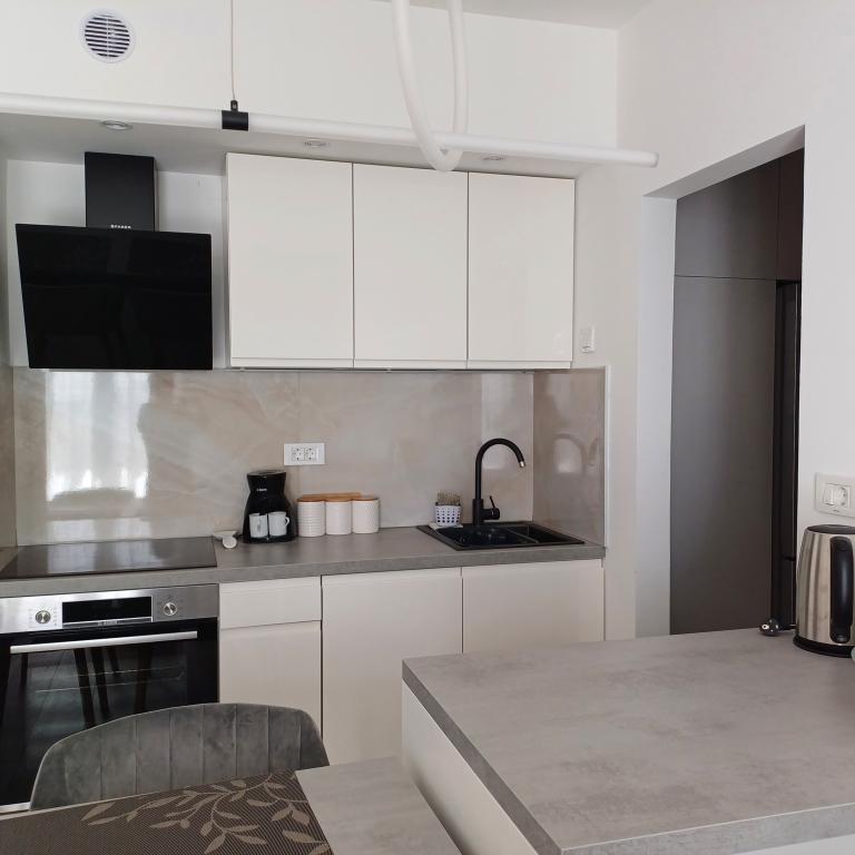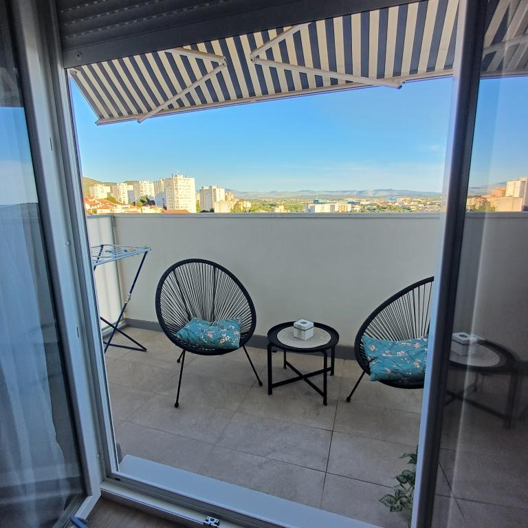 Luksuzni apartman se nalazi na 10 katu stambene zgrade u Šibeniku na odličnoj lokaciji, na 20 minuta hoda od stare gradske jezgre i gradske plaže Banj. Luksuzni smještaj sa balkonom koji pruža prekrasan pogled na more i grad gostima pruža ugodan i opuštajući boravak. Apartman se sastoji od prostrane spavaće sobe,hodnika, kupaonica sa walk in tušem, sušilom za kosu i perilicom rublja. Dnevni boravak i blagavonica su u prostoru sa modernom kuhinjom opremljenom za kraći ili duži boravak te sadrži posuđe, kuhinjski pribor, štednjak, pećnicu, perilcu suđa, hladnjak , kuhalo za vodu i aparat za kavu. Apartman je klimatiziran, a gostima je na raspolaganju tv i besplatni wifi. Javni parking se nalazi pred samim objektom. Čim izađete iz zgrade i prijeđete ulicu, na udaljenosti od 30 m se nalaze trgovina sa hranom, ljekarna i caffe bar, a banka, pošta, pizzeria, teretana , frizerski salon, shopping centar, autobusni kolodvor, pristanište za brodove su na udaljenosti od 500- 700 m.