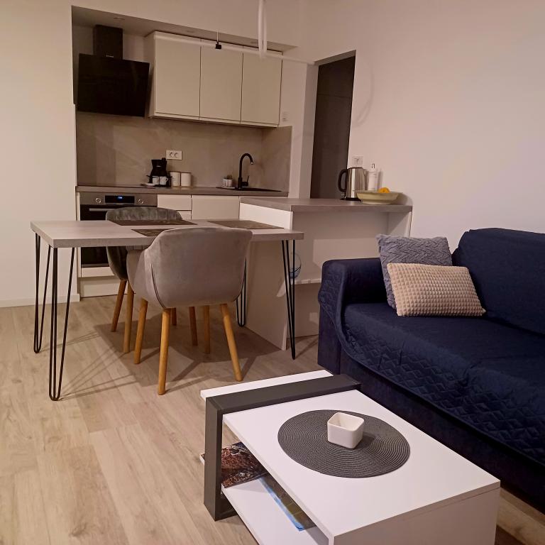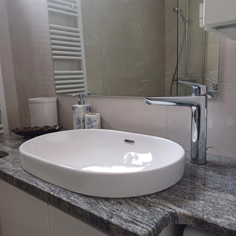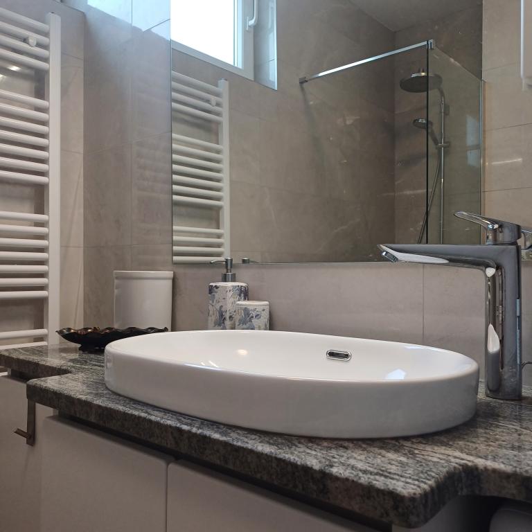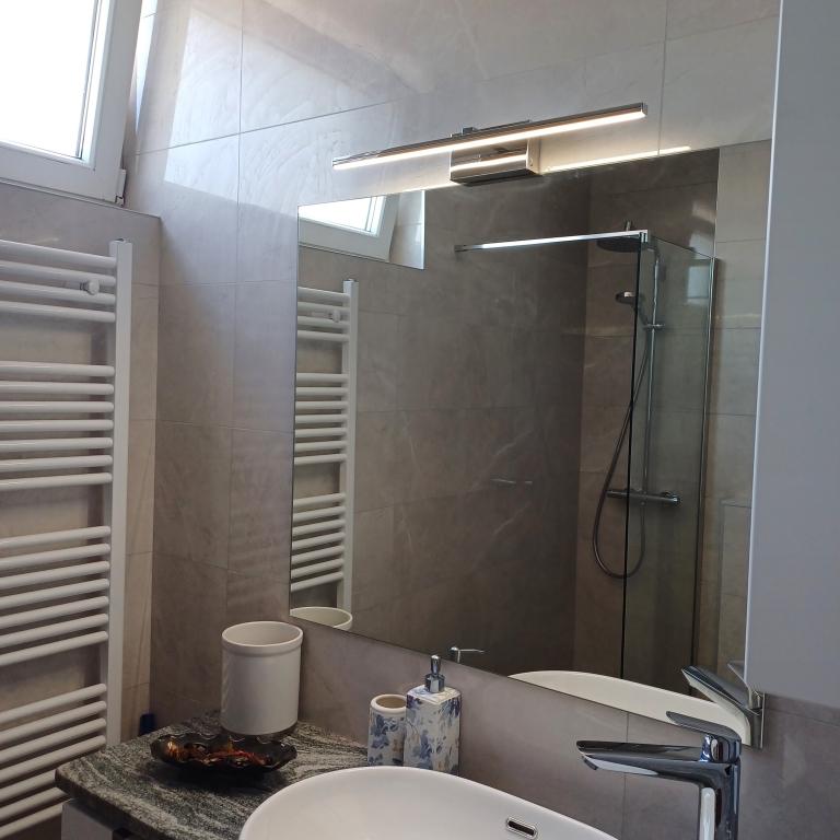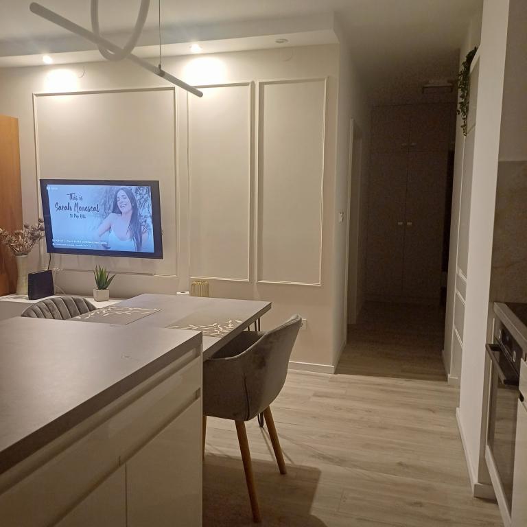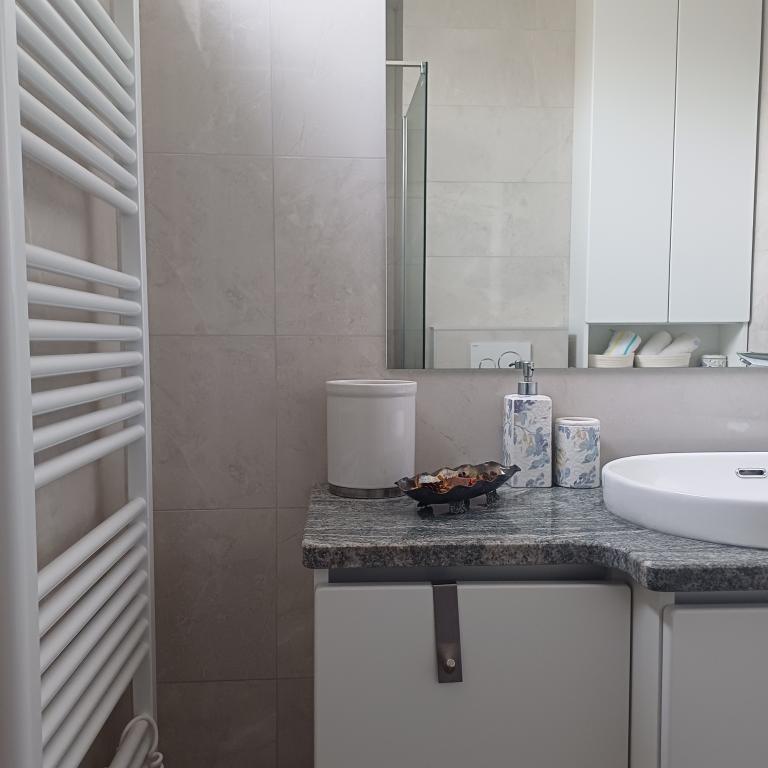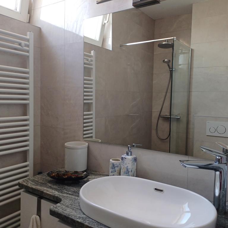 Luksuzni apartman se nalazi na 10 katu stambene zgrade u Šibeniku na odličnoj lokaciji, na 20 minuta hoda od stare gradske jezgre i gradske plaže Banj. Luksuzni smještaj sa balkonom koji pruža prekrasan pogled na more i grad gostima pruža ugodan i opuštajući boravak. Apartman se sastoji od prostrane spavaće sobe,hodnika, kupaonica sa walk in tušem, sušilom za kosu i perilicom rublja. Dnevni boravak i blagavonica su u prostoru sa modernom kuhinjom opremljenom za kraći ili duži boravak te sadrži posuđe, kuhinjski pribor, štednjak, pećnicu, perilcu suđa, hladnjak , kuhalo za vodu i aparat za kavu. Apartman je klimatiziran, a gostima je na raspolaganju tv i besplatni wifi. Javni parking se nalazi pred samim objektom. Čim izađete iz zgrade i prijeđete ulicu, na udaljenosti od 30 m se nalaze trgovina sa hranom, ljekarna i caffe bar, a banka, pošta, pizzeria, teretana , frizerski salon, shopping centar, autobusni kolodvor, pristanište za brodove su na udaljenosti od 500- 700 m.