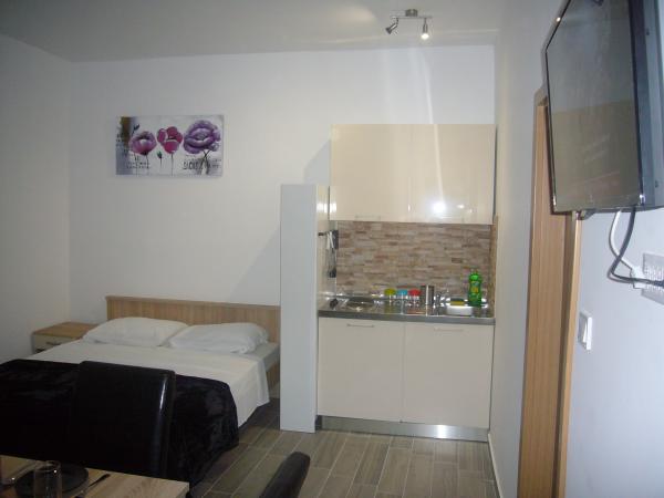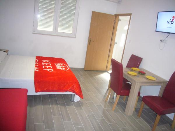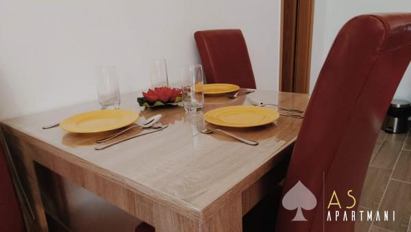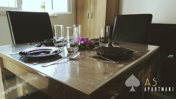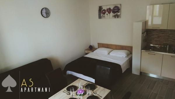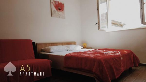 Novouređeni apartmani As nalaze se u starom dijelu Šibenika u mirnoj četvrti. U neposrednoj blizini nalaze se tvrđava Barone i Sv. Mihovil. Do centra grada je 5 minuta hoda. , Do obližnje plaže Banj ima 10 minuta hoda. Apartmani imaju terasu s pogledom na more. Automobilom se može doći u neposrednu blizinu apartmana, a parking nije osiguran. Postoji javni gradski parking koji se naplaćuje, a udaljen je 7 minuta hoda od apartmana.