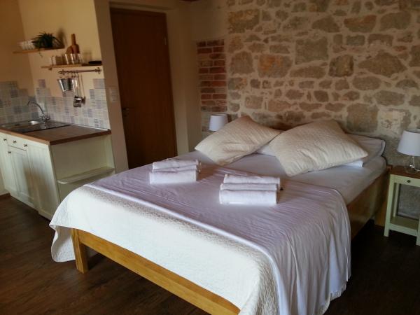 Kamena villa sa sest studio apartmana smjestena u blizini povijesnog centra Sibenika. Villa se nalazi u mirnom i opustajucem kutku grada na samo dvije minute hoda do plaze. Svi apartmani su novouredeni. Kameni zidovi, drvene grede i podovi sa mnogim autenticnim i rustikalnim elementima pruziti ce Vam poseban dalmatinski ugodaj.