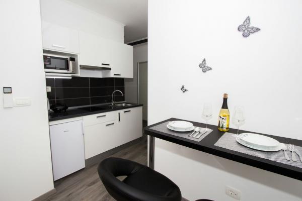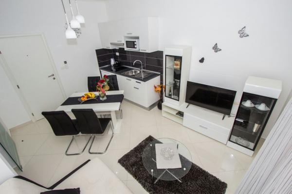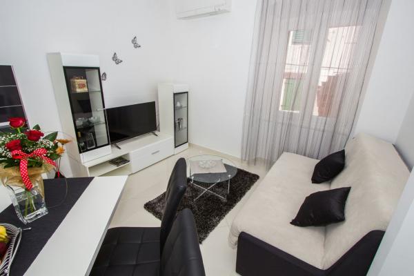 Novi moderno uredeni apartmani u Šibeniku u neposrednoj blizini katedrale Sveti Jakov. Sastavljeni od kuhinje, dnevne sobe, spavaće sobe i kupaonice. Apartmani se nalaze u neposrednoj blizini trgovine, restorana, banke, pošte. Plaža Banj udaljena je 500 metara. Javno parkiraliste dostupno je u blizini objekta i nije potrebna rezervacija.