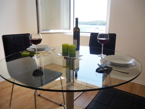 Moderan apartman sa prekrasnim pogledom na korzo. Jako je čist i lijepo sređen, lokacija je odlična (za par minuta hoda može se doći do dućana, pekare, trajekta...). Ima zajednička prostorija sa veš mašinom i perilicom suđa što je jako praktično i doprinosi osjećaju odmora. Vlasnici su jako ljubazni i spremni pomoći, sve pohvale i preporuke za ovaj apartman!