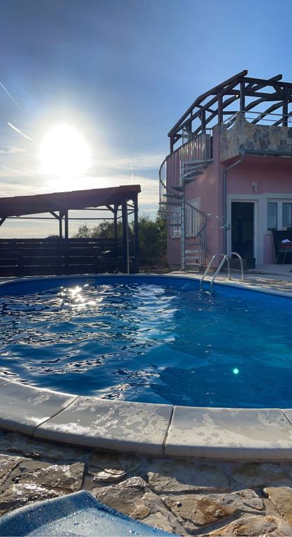Doživite opušteni odmor na mirnoj lokaciji. Živite u kuci na prostranom prostoru za 10 osoba. Veliki dnevni boravak sa stolom za blagovanje i potpuno opremljenom kuhinjom. 5 spavaćih soba, 5 kupatila su vam na raspolaganju, kao i perilica rublja, glačalo i usisivač. Velika terasa, bazen, oprema za roštilj, trampolin, stolni nogomet, stolni tenis osiguravaju raznolikost. Uključeni su klima uređaj i WiFi. Supermarketi, restorani i caffe barovi su u neposrednoj blizini. Mirna, ali središnja lokacija poziva vas da se zadržite i otkrijete ljepotu prirode u mirnom okruženju!