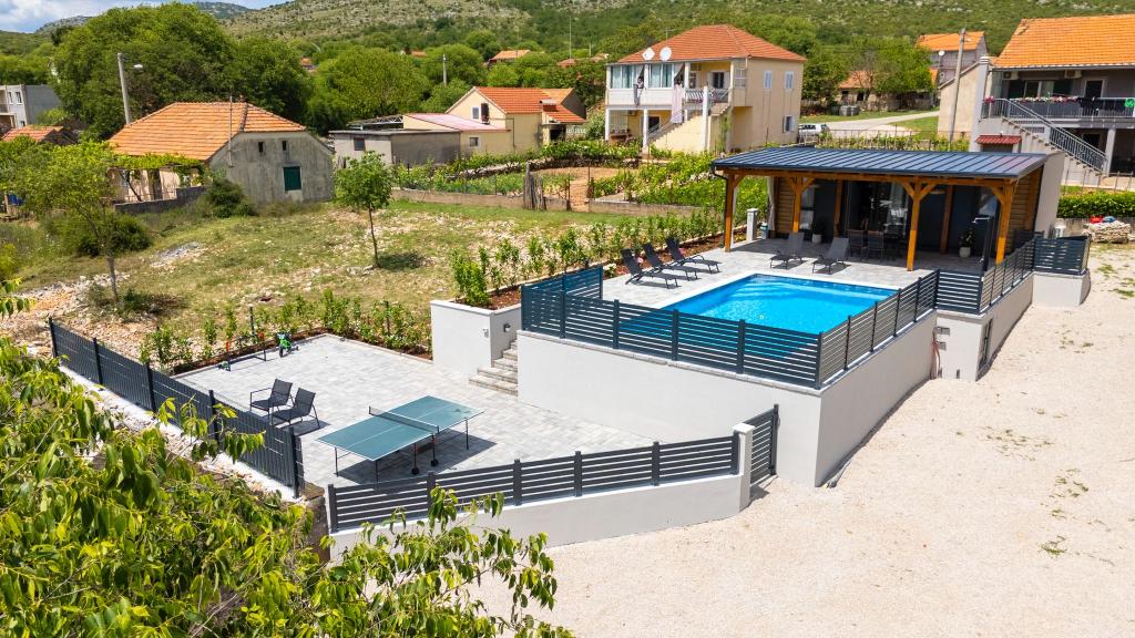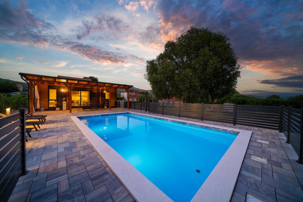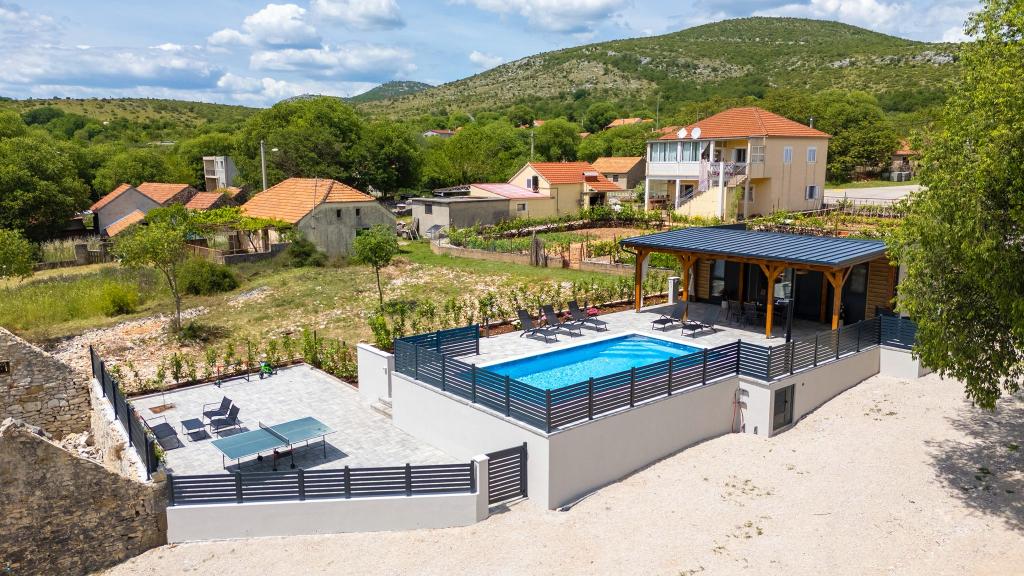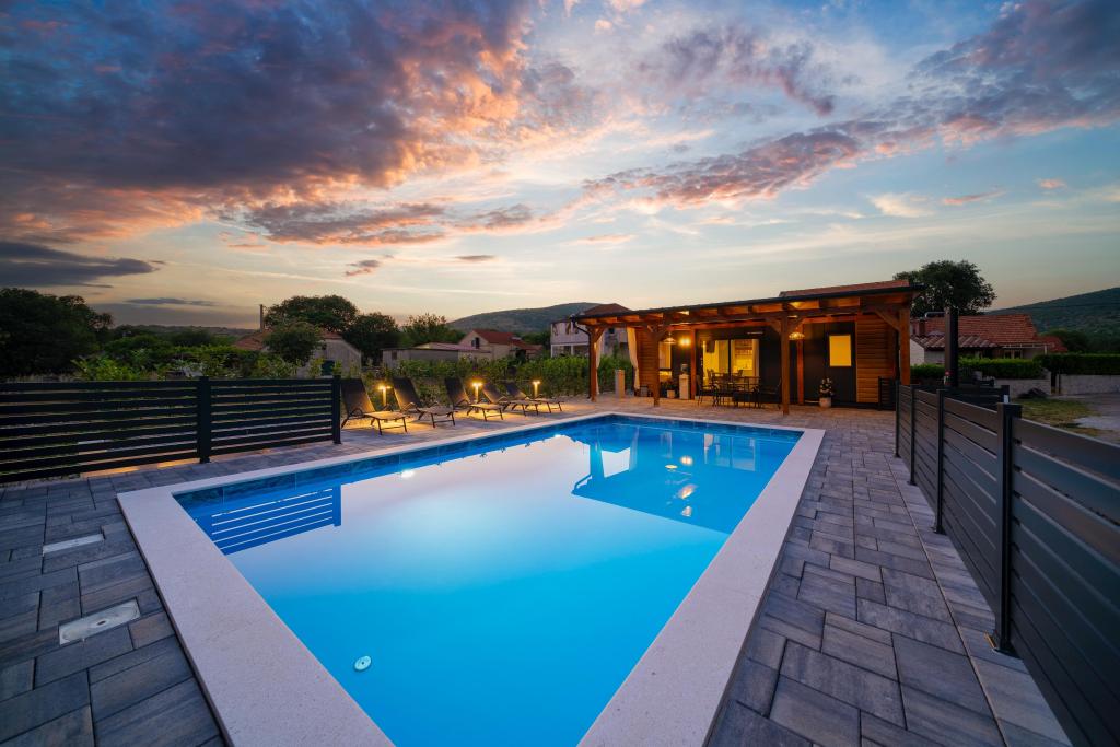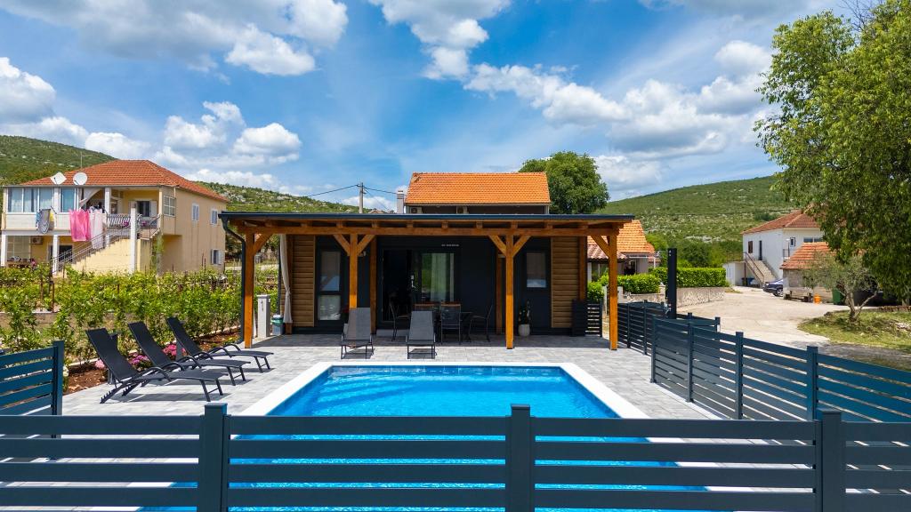 Kompletno i moderno opremljena mobilna kuca na selu, u prirodi.Imamo veliki grijani bazen 4•8 i 150cm dubine.Bazen je privatan i ograden ogradom i zelenilom . Dvoriste se prostire na 200 kvadrata,ima vanjske garniture za sjedenje, stolni tenis, trampulin za najmlade…Objekt se nalazi 23 km od centra grada, 20 km od plaze, 35 km od zracne luke Split te 30 km od nacionalnog parka Krka. U neposrednoj blizini,7 km je ulaz na autoput.Sibenik je grad bogat povijesnom bastinom, te ima cak 4 tvrdave kulture.