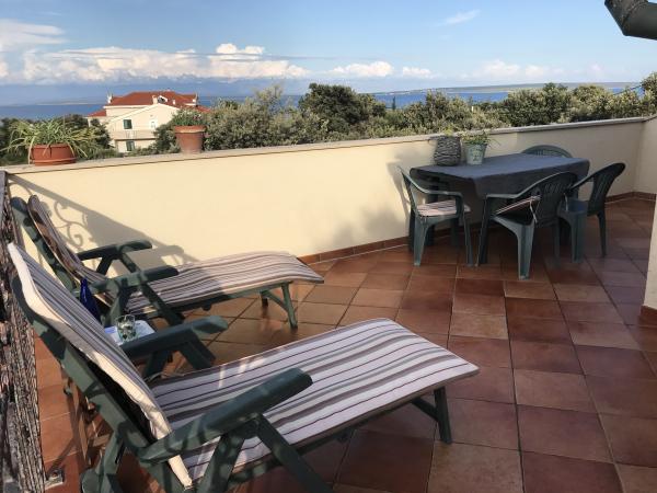 Apartman TENA (52 m2) nalazi se na katu nove obiteljske kuće. Potpuno je namješten i opremljen (klima uređaj i Internet). Ima dvije spavaće sobe s po 2 kreveta, a može se koristiti i pomoćni ležaj u dnevnom boravku. Kuhinja je prostrana, sa svim potrebnim uređajima. S prostrane terase se pruža prekrasan pogled na more, otoke Olib i Pag. Gostima je na raspolaganju kameni roštilj u dvorištu. Apartman se nalazi 200-tinjak metara od mora. Udaljenost od centra mjesta (trgovina, restorana, pošte i kafića) je oko 3-5 min hoda, a do zapadne obale Silbe te prelijepih pješčanih i kamenih plaža možete doći uz 5-10 minutnu šetnju.