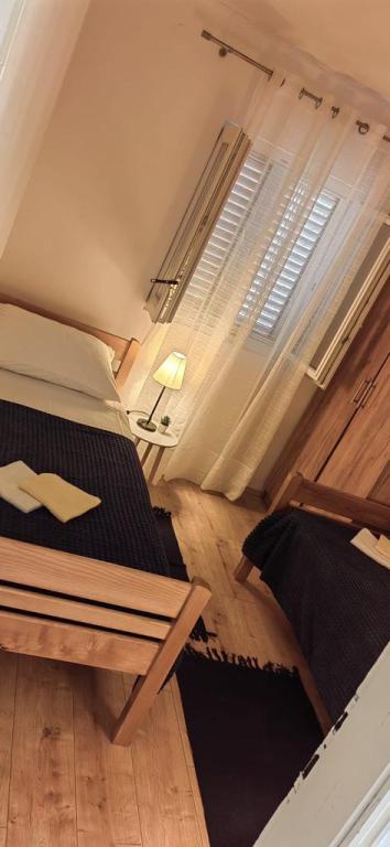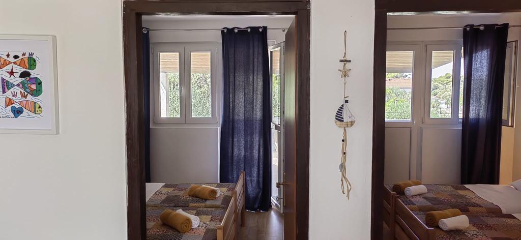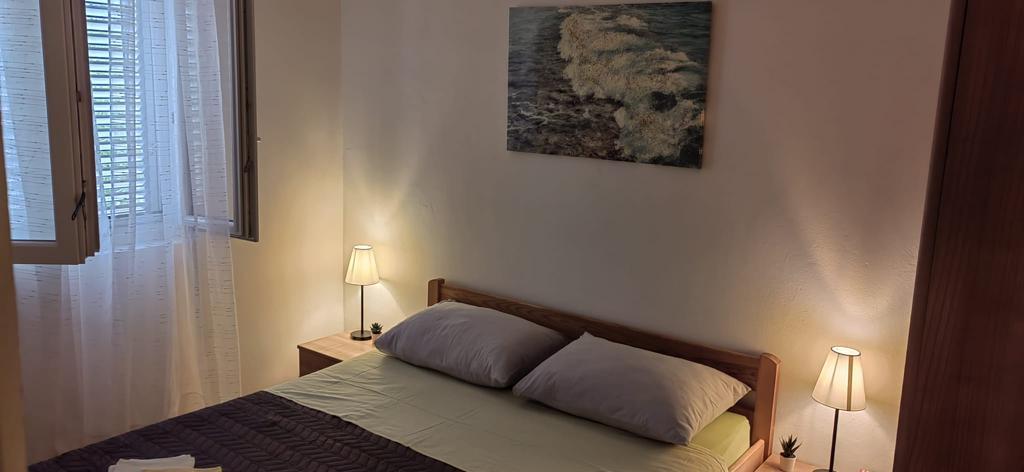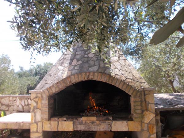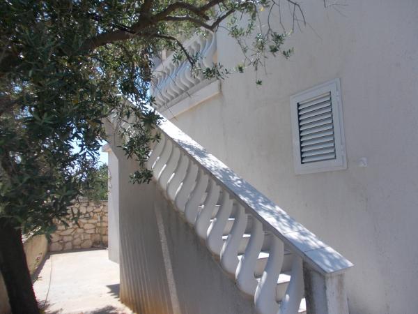 Apartmani u prizemlju i na katu obiteljske kuće s jednom ili dvije dvokrevetne sobe i pripadajućim prostorijama. U prizemlju kuće nalazi se prostrano dvorište s maslinikom u kojem je smješten veliki roštilj na upotrebu gostima. U velikom apartmanu na katu, obje sobe imaju izlazi na prostranu terasu s pogledom na mjesto. Jednosobni apartman je također na katu a treći, dvosobni je u prizemlju.