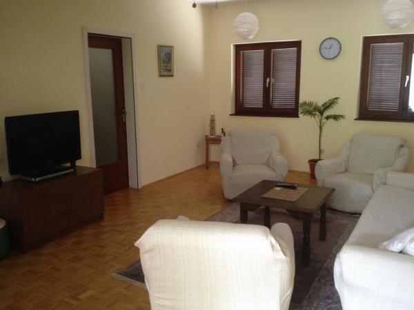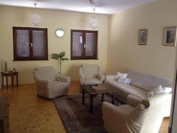 Apartman je udaljen od plaže samo 100 m. Radi se o cijeloj etaži komforne kuće sa tri dvokrevetne spavaće sobe, dnevnim boravkom, kuhinjom, dvije prostrane terase s pogledom na more i velikom uređenom i ograđenom okućnicom kojom se koriste isključivo gosti našeg apartmana. Dakle, mir i privatnost su zagarantirani.