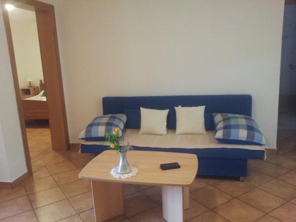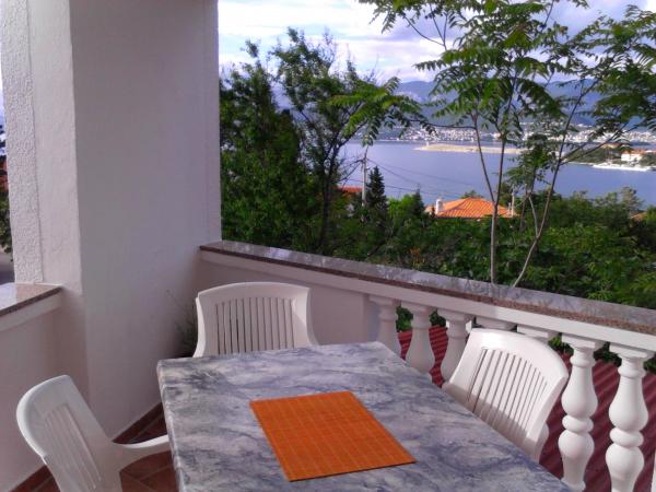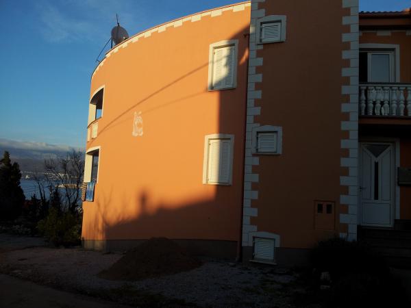 Apartman se nalazi 70 metara od mora. U kuci ima 6 apartmana. Svaki app ima 58m2 i svaki app ima 2 spavace sobe, kuhinja, kupaonica, dnevni boravak terasa sa prekrasnim pogledom na more. Vidi se cijeli Kvarner od Rijeke do Novog Vinodolskog. Plaza je udaljena od kuce 70 mettara. Svaki app ima parking. Zajednicki gril. Od centra mjesta kuca je udaljena 200 metara. Od trgovine 100 m od pekare 50 m. Tiho mirno mjesto gdje se mozete dobro odmoriti od uzurbane svakodnevice. App se iznajmljuje cijele god. Radujemo se Vasem dolasku:-D