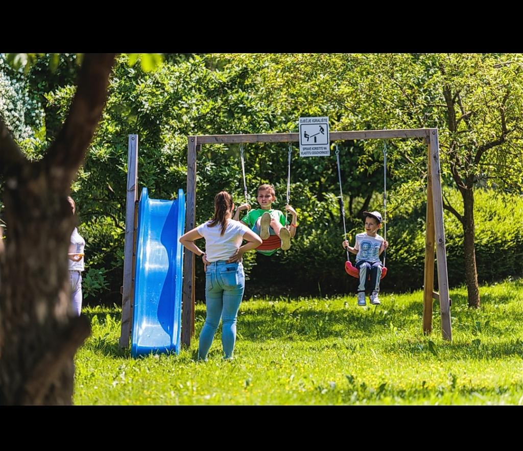 U Rajskom vrtu, na jezeru Tišina, uživati ćete u miru prirode i bogatstvu flore i faune na imanju. Imanje se prostire na više od 6000m2. Bogat sadržaj za djecu i odrasle; nogometni golovi i lopte, PS4, frizbi, badminton, lopta za odbojku, ljuljačke, tobogan, trampolin, prenosivi zvučnik... Veliki roštilj i sjenica smješteni su uz jezero.