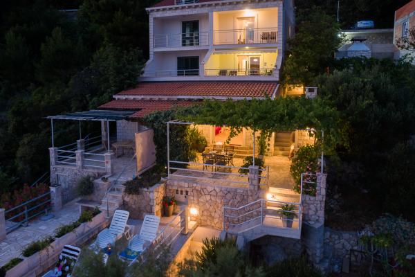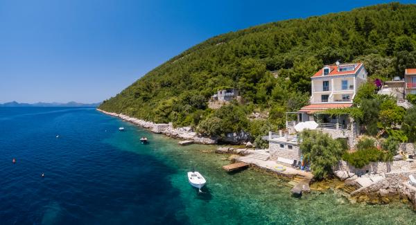 Turistička pristojba je uključena u cijenu.Oba apartmana imaju pravo na uporabu zajedničke terase opremljene sa suncobranima i ležaljkama i ekstra velikim tradicionalnim kamenim roštiljem. Tu možete provesti roštilj večeri samo nekoliko koraka od plaže. S terase kamenim stubištem možete se spustiti izravno u kristalno čisto more. Pouzdan WLAN pristup se nudi u cijelom objektu besplatno. Besplatno je i parking mjesto za Vaše prijevozno sredstvo. Mi živimo na drugom katu kuće i uvijek smo Vam na usluzi. Na zahtjev i uz nadoplatu možemo organizirati transfer iz/do zračne luke Dubrovnik ili Vas možemo na zahtjev i uz nadoplatu odvesti na izlet brodom do Šipana, Lopuda, Jakljana i drugih Elafita ili do otoka Mljeta. Pogledajte slike i zamislite kako bi Vaš odmor mogao izgledati...