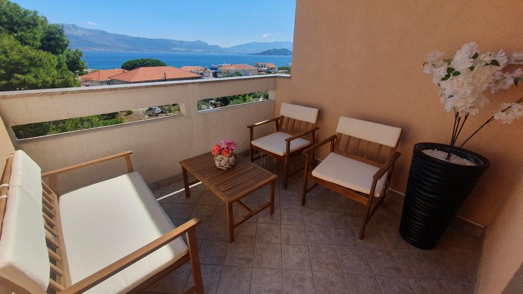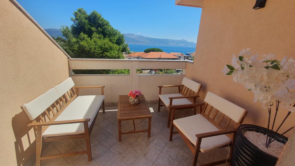 Kompletno i suvremeno opremljen apartman u samom centru Slatina na otoku Ciovu.Ciovo je otok povezan s dva mosta i izvrsna povezanost s okolnim gradovima.Slatine su samo 5km od grada Trogira i 30km od grada Splita.Takoder iz Slatine ide brodska linija i dolazak u Split je samo za 30min.Apartman se nalazi 200m od mora i 5 minuta hoda do najblizih restorana.Udoban apartman, namješten u dalmatinskom stilu, smješten u samom centru Slatina na otoku Čiovu. S 3 balkona prostire se prekrasni pogled na more i lastelanski zaljev, a sve što vam je potrebno tijekom vašeg odmora (trgovina,restorani itd. ) nalazi se najviše 5min hoda od apartmana.