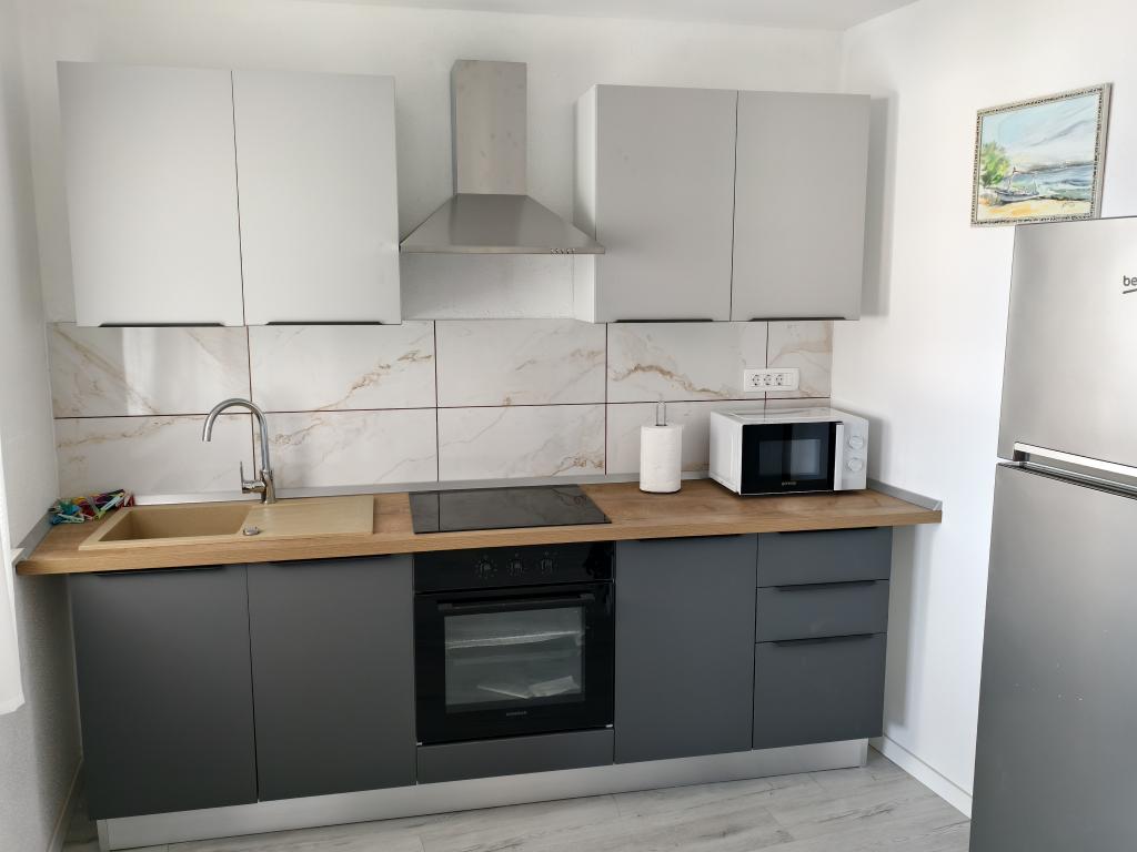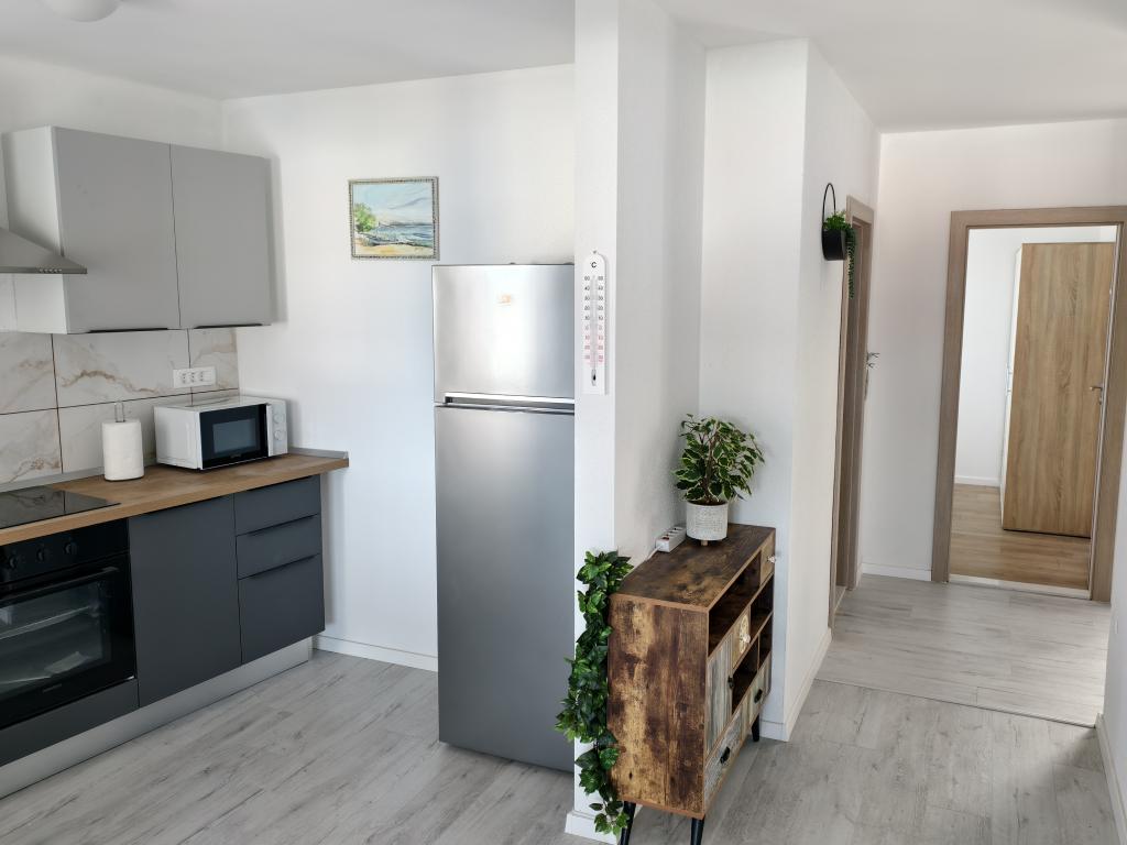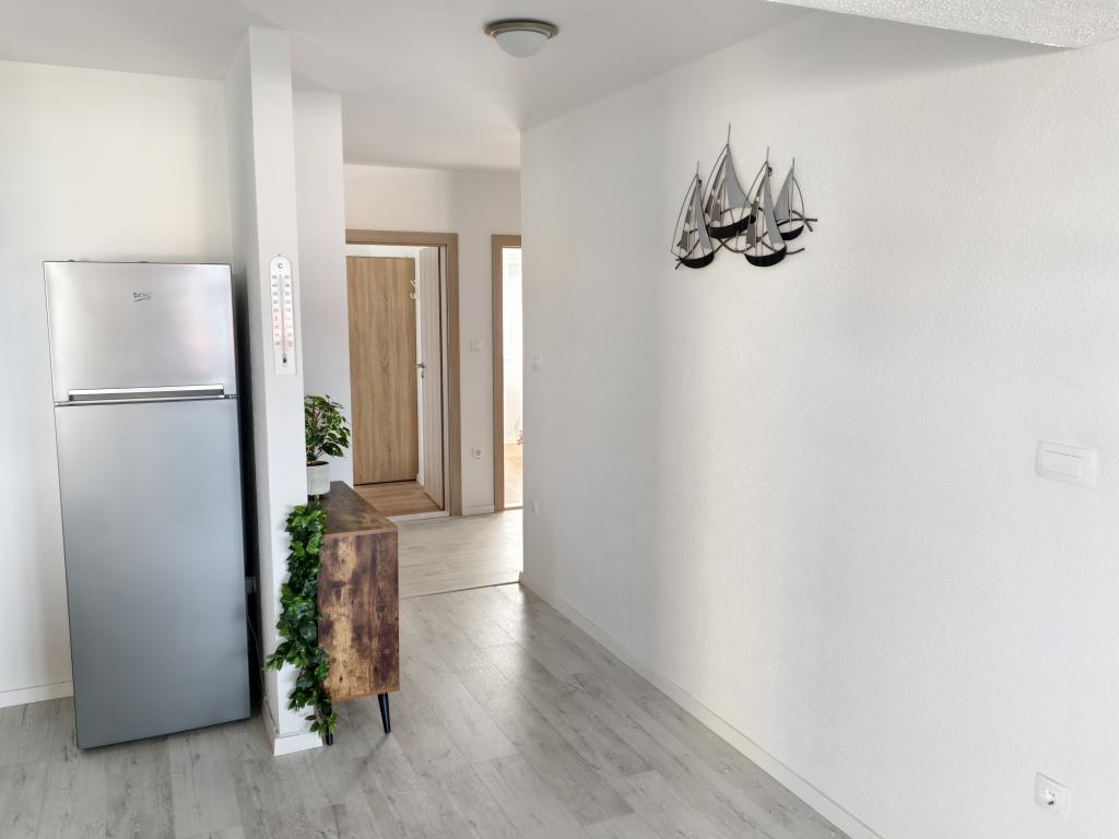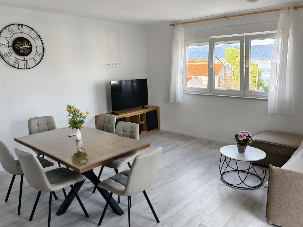 Preporučujem. Vrlo čisto, velika kuhinja koja je praktički opremljena kao kod kuće (čak ima i blender). Velika spavaća soba, mjesto za dijete, posteljina je praktički nova, veliki udoban krevet. Kupaonica sa tuš kabinom, čak i mini dnevni boravak s kaučem na razvlačenje i veliki tv. I što je najvažnije, more je tik do objekta, s pogledom na vrt i ravno na plažu. Plaža je posuta malim kamenjem, tako da je pogodno za dijete. Ja bih preporučio ovaj stan, jer je dobro održavan, čist, nov namještaj, bez stepenica, a tik uz more.