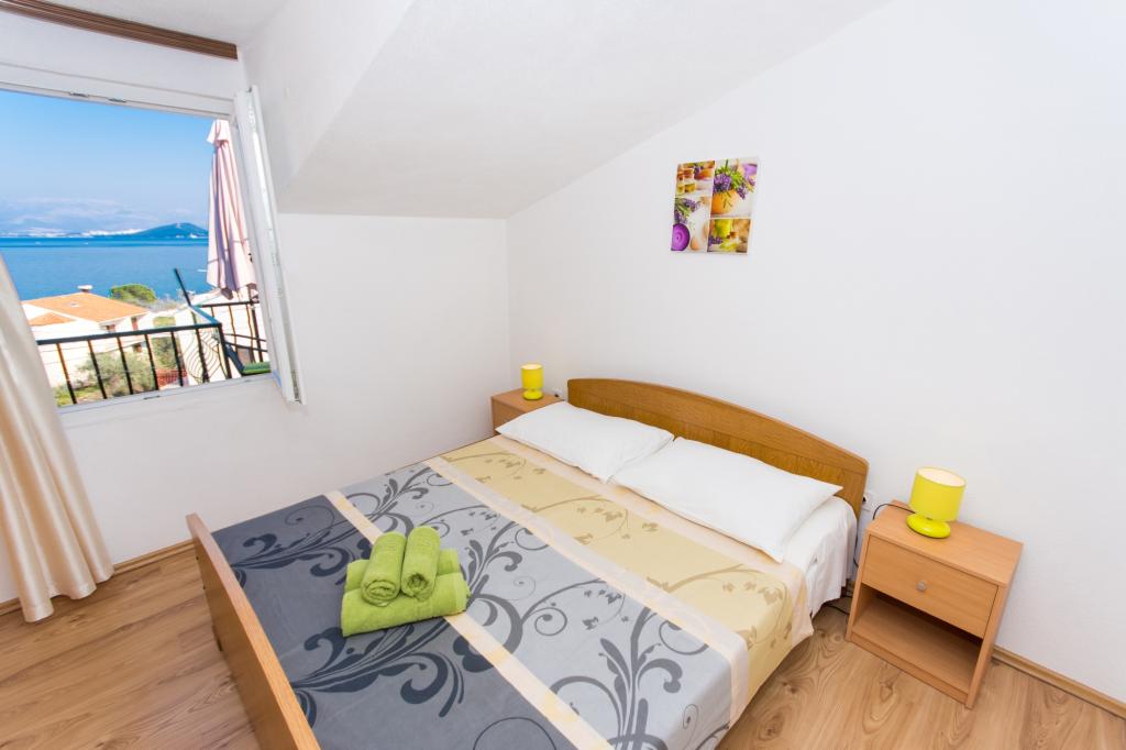 Apartmani Anka su smješteni u Slatinama na otoku Čiovu.Udaljeni su 5 km od Trogira.Splitom su povezani brodskom linijom.Apartmani se nalaze na prvom i drugom katu obiteljske kuće .Apartman za 6 osoba se nalazi na prvom katu i sastoji se od 3 sobe dnevnog boravka kuhinje i kupaone.Na drugom katu su dva apartmana svaki sa dvije sobe kuhinjom i kupatilom.Svi a partmani imaju terase s kojih se pruža predivan pogled na more.Svi apartmni imaju poseban ulaz.Kuća je okružena mediteranskim biljem i vrtom za djecu.Gostima je osiguran parking i korištenje vanjskog grila.