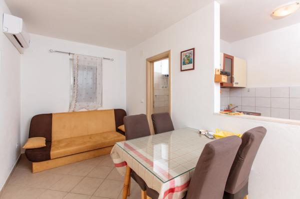 Apartmani se nalaze u mirnom okruženju, 250 m. , od plaže, trgovine, pekare, restorana, beach barova. Moderno novouređeni apartman sa kuhinjom, kupatilom, klima uređaj, wifi, parking, grill, vanjski tuš pruža idealne uvjete za vaš ugodan odmor. Apartmani K1 i K2 imaju mogućnost spajanja balkona. Slatine na otoku Čiovu malo mirno mjesto smješteno između Splita i Trogira, Sa ta dva bisera, gradovi zaštićeni od UNESC-a, povezani smo brodskim linijama koji vam omogučuju posjete, izlete te povratak u Slatine na naše bijele šljunčane plaže i čisto more.