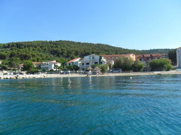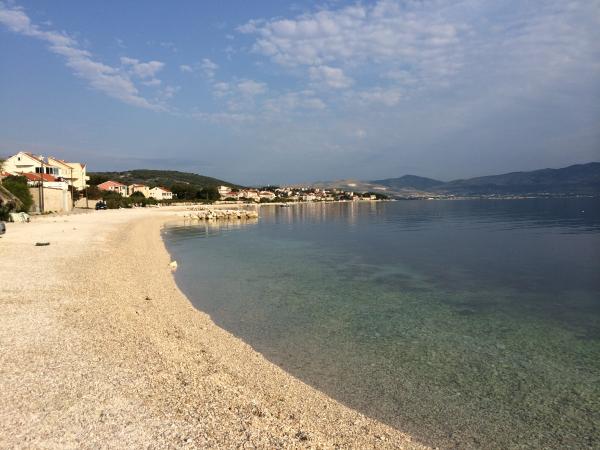 Apartmani se nalaze u neposrednoj blizini plaže s prekrasnim pogledom na more. Vrlo čisto, opremljeno svim potrebnim stvarima. Vlasnica je jako ljubazna, uslužna i brine o svojim gostima. Uređena plaža s finim šljunkom i vanjskim tušem. Mjesto u mirnom dijelu. Međutim, blizu je barova, restorana i vodenog igrališta. Blizina izleta u Trogir i Split. Do tamo možete doći javnim prijevozom i trajektom.