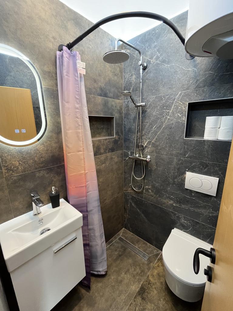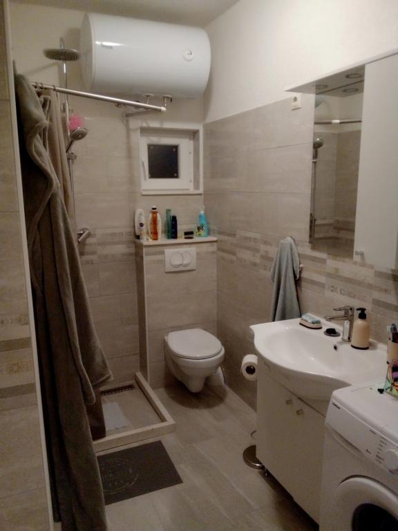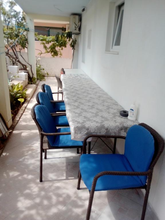 Možemo samo preporučiti ovaj apartman. Ne samo da je bio u mirnom dijelu Slatina, nego je i zadovoljio naše zahtjeve (tiho, daleko od ljudi, mala terasa, ...). Domaćini su bili vrlo susretljivi i odmah su ispunili sva naša pitanja i zahtjeve. Bili smo smješteni u 2+1, dvije odrasle osobe. Stan je po fotografijama izgledao veći, možda će vas iznenaditi što je kuhinja u hodniku, ali sve je bilo čisto, sasvim novo. Velika prednost je bio parking u dvorištu stana i mogućnost korištenja garaže kao spremišta vodene opreme. Plaža ispred apartmana je najljepša i najveća u cijelim Slatinama, bilo je dosta mjesta na njoj, ljudi su čistili za sobom. More prekrasno čisto, puno ribe! U smještaju postoji roštilj i bar - ali mi to nismo koristili. Prema riječima domaćina, koristi se kada je veća grupa ljudi i okupi se na pivu. Najbliža veća trgovina je dosta udaljena (1 km), a restoran oko 800 m prekrasnom šetnicom uz obalu. Zato preporučam kupnju u većem gradu (Trogir - Plodine, Kaufland).