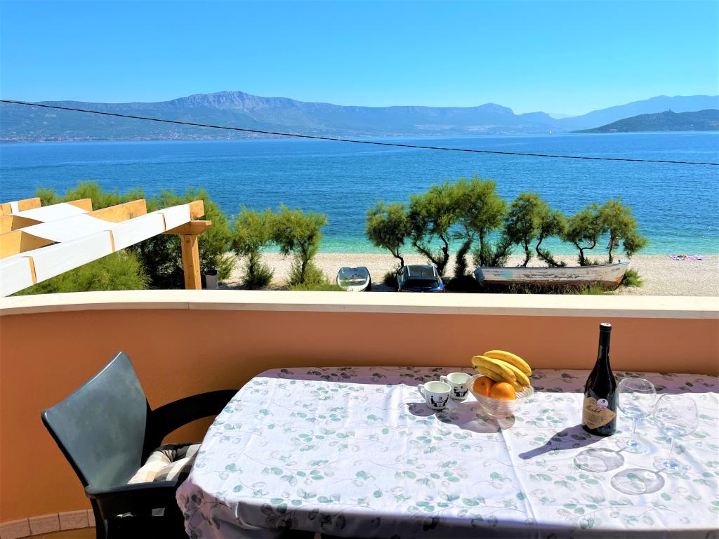 Kompletno i suvremeno opremljeni apartmani u mirnom predjelu Slatina, smješteni prvi red do mora, 8 metara hoda do plaže; objekt se nalazi 4 minuta hoda do centra. Pred apartmanima se nalazi šljunčana plaža, idealna za kupanje. S terasa apartmana pruža se prekrasan pogled na plažu, more, Kaštelanski zaljev, Split, Trogir i samo mjesto Slatine. Apartmani su komforni, opremljeni SAT TV-om, bezicnim internetom i klimatizirani. U vrtu kuće nalazi se ljetni tuš, te grill koji je gostima na raspolaganju. Za goste apartmana osiguran je parking. Slatine su malo ribarsko mjesto gdje možete kupiti svježu ribu, domaće povrće i maslinovo ulje. Ljeti se održavaju se fešte i sportski susreti. Restorani, pizzeria, konobe, caffe barovi i trgovine, smješteni su u samom centru mjesta, svega 4 minuta šetnje uz more, od našeg objekta. Na južnoj strani otoka Čiovo, svega 2 km od aprtmana, nalazi se poznato svetište Gospe od Prizidnice koje svakako treba posjetiti.