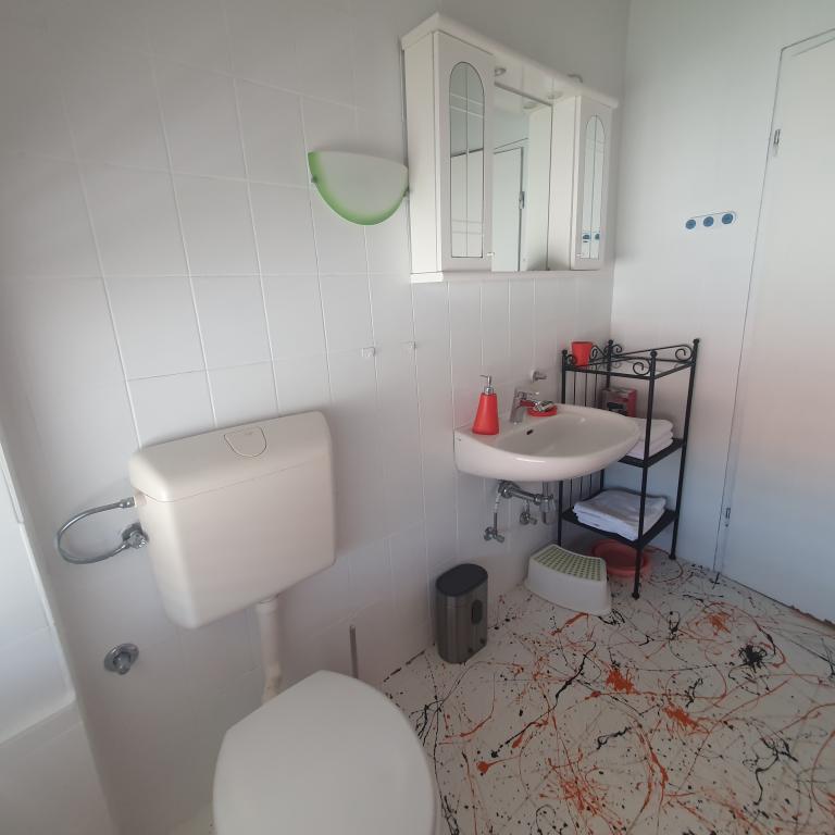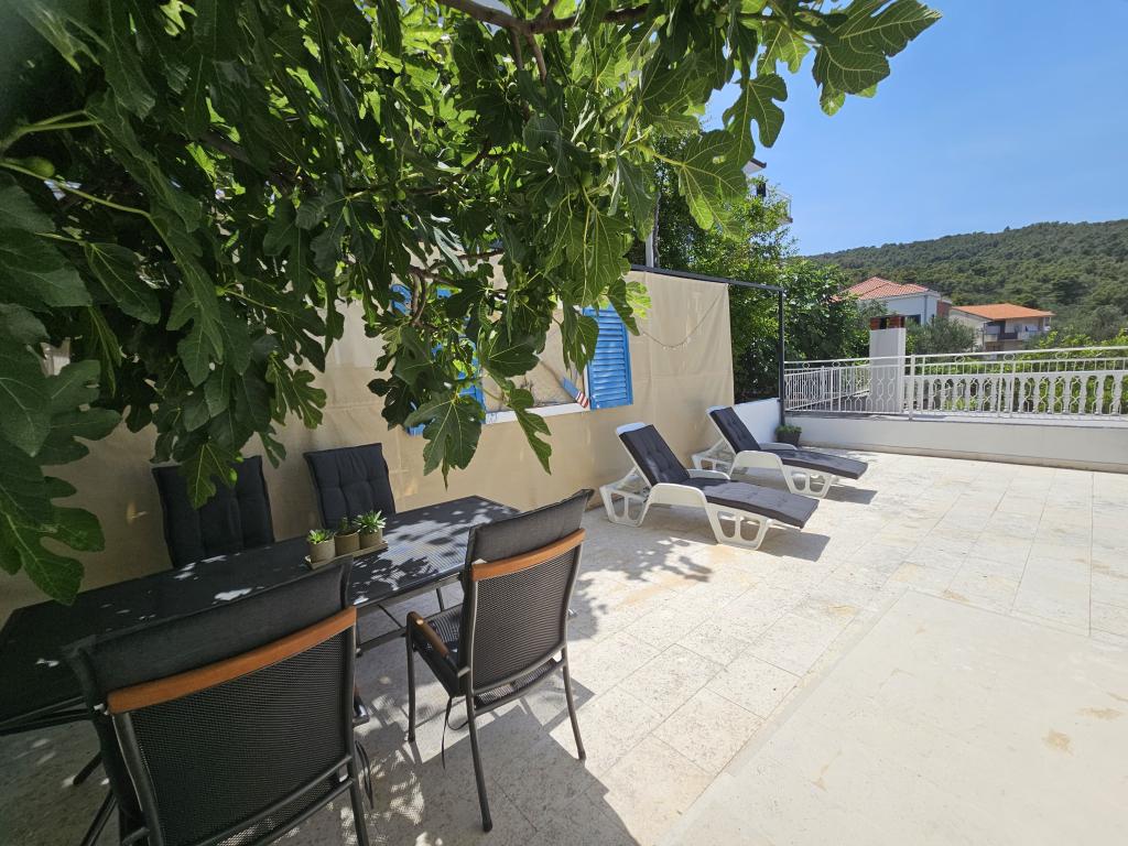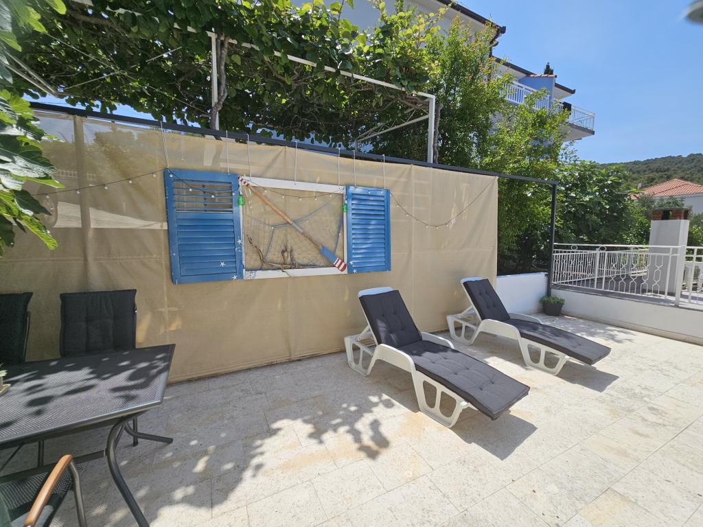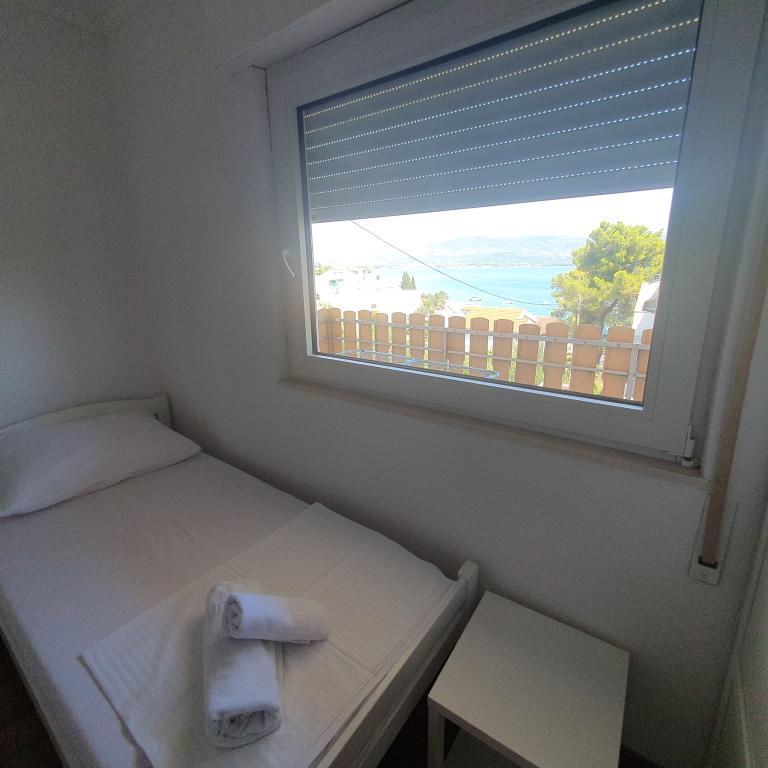 Nudimo 2 apartmana u sklopu kuće na 1. i 2. katu. Do plaže ima 100 m. 2 minute do mora. Svi apartmani su klimatizirani, svaka soba ima klimu. Ako dolazite avionom, uz najavu, vas možemo dočekati. Ako ste avionski gosti, nudimo i ručnike za plažu pa će vaši koferi lakši. Parking je u blizini kuće, javni koji se ne plaća i uvijek ima mjesta. Auto se ispred kuće može parkirati prilikom dolaska i odlaska. Slatine su malo ribarsko mjesto na otoku Čiovu koji je povezan mostom od kuće je udaljeno10 minuta laganog hoda iz kojeg svaki dan po nekoliko puta prometuje brod za Trogir koji je udaljen 6 km - 20 minuta brodom - jednostavno za posjetiti UNESCO grad Trogir, a Split je udaljen 30 minuta brodom - izlazak iz broda u Splitu je u samom središtu Splita pa možete na jednostavan način, bez automobila doći do ovog prekrasnog grada. U sklopu kuće se nalazi i roštilj i tuš. Za odlazak u trgovinu ili na kraći izlet možete koristiti električni bicikl i skuter. Automobil možemo povoljno iznajmi
