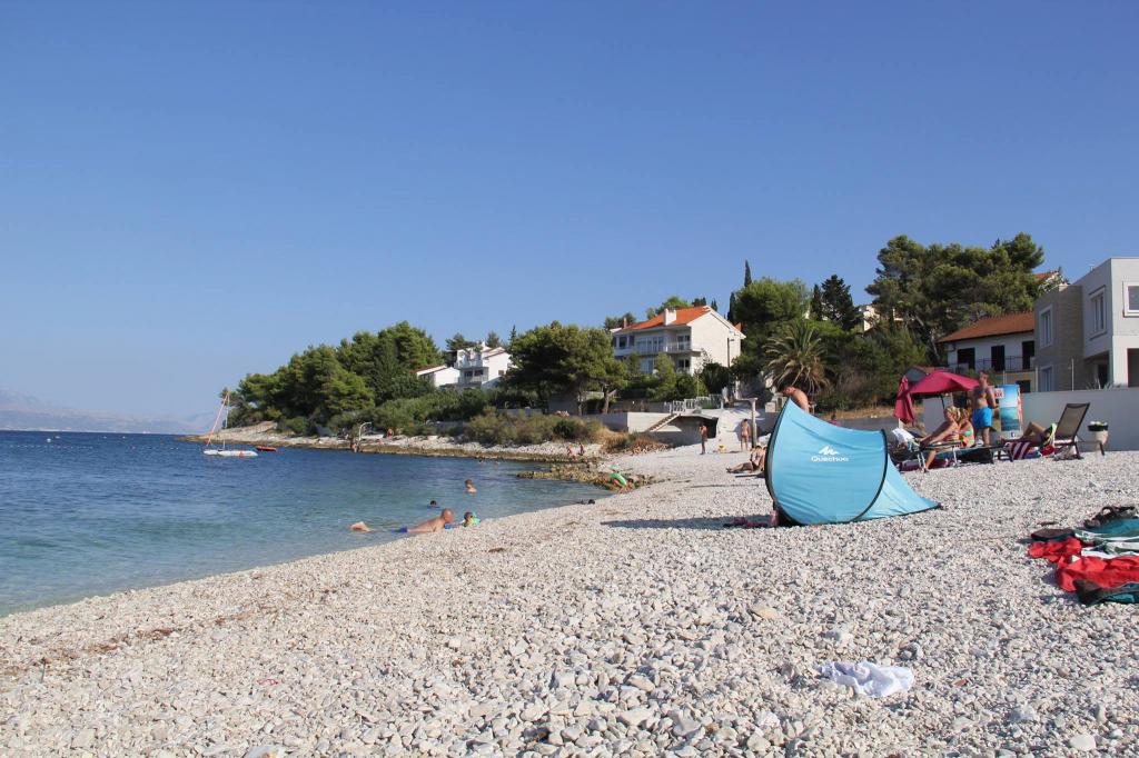 Apartmani Villa Sofija smješteni su svega 70 m od plaže u mjestu Slatine na otoku Čiovo. Našim gostima nudimo smještaj u četiri potpuno uređene i opremljene apartmana Svi apartmani opremljeni su sa: satelitskim TV-om i klima uređajima, pristupom za internet. Apartmani imaju opremljene kuhinje sa kuhinjskim aparatima, suđe i posuđe, i balkone sa pogledom na more i Kaštelansku rivieru. Apartmani se sastoje od kuhinje sa blagovaonom, dnevnim boravkom u kojem se nalazi kutna garnitura koja može poslužiti kao pomoćni ležaj do dvije osobe, spavaće sobe sa bračnim krevetom i kupaone sa tuš kabinom. Gostima na korištenju je vanjski grill u lijepo uređenom vrtu, te parkiralištem za svaki apartman po jedno vozilo. Udaljenost od mora i šljunčane plaže je oko 70 metara. Radujemo se Vašem dolasku!