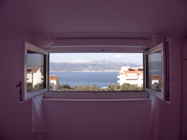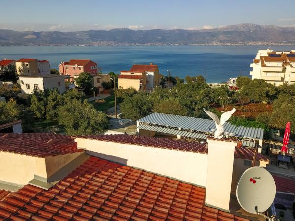 Kompletno namješteni apartmani su idealno mjesto za obiteljsko ljetovanje. Oba apartmana imaju predivan pogled na Kaštelanski zaljev i Split. Najbliža plaža udaljena je samo 50 m. Svaki apartman ima poseban ulaz. . Imate prijatelje i želi te se družiti s njima. možete zajedno iznajmiti apartmane. Imate na raspolaganju terasu, gril i parking. . Svaki apartman sastoji se od sobe(a)sa bračnim krevetom, bogato opremljenom kuhinjom sa svim aparatima (perilica suđa). dnevnim boravkom s udobnim trosjedom na razvlačenje (Idealno za djecu )trpezarijom. hodnikom i kupatilo s tuš kabinom. Apartmani su klimatizirani. posjeduju vlastiti parking i korištenje bežičnog interneta. Posteljina i ručnici su naša briga. Tijekom vašeg boravka ugostit ćemo vas s pićem dobrodošlice, naše domaće vino. Na odlasku smo spremili mala poklon iznenađenja.
